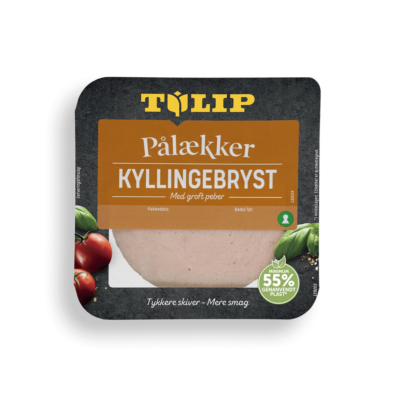 90 gTil Tulip Pålækker Kyllingebryst bruger vi udelukkende kyllingebryst af bedste kvalitet, som vi koger i flere trin. Vi slutter af med at rulle kyllingebrystet i en specielt udvalgt peberblanding. For at give den bedste smagsoplevelse skærer vi Tulip Pålækker Kyllingebryst i tykkere skiver.