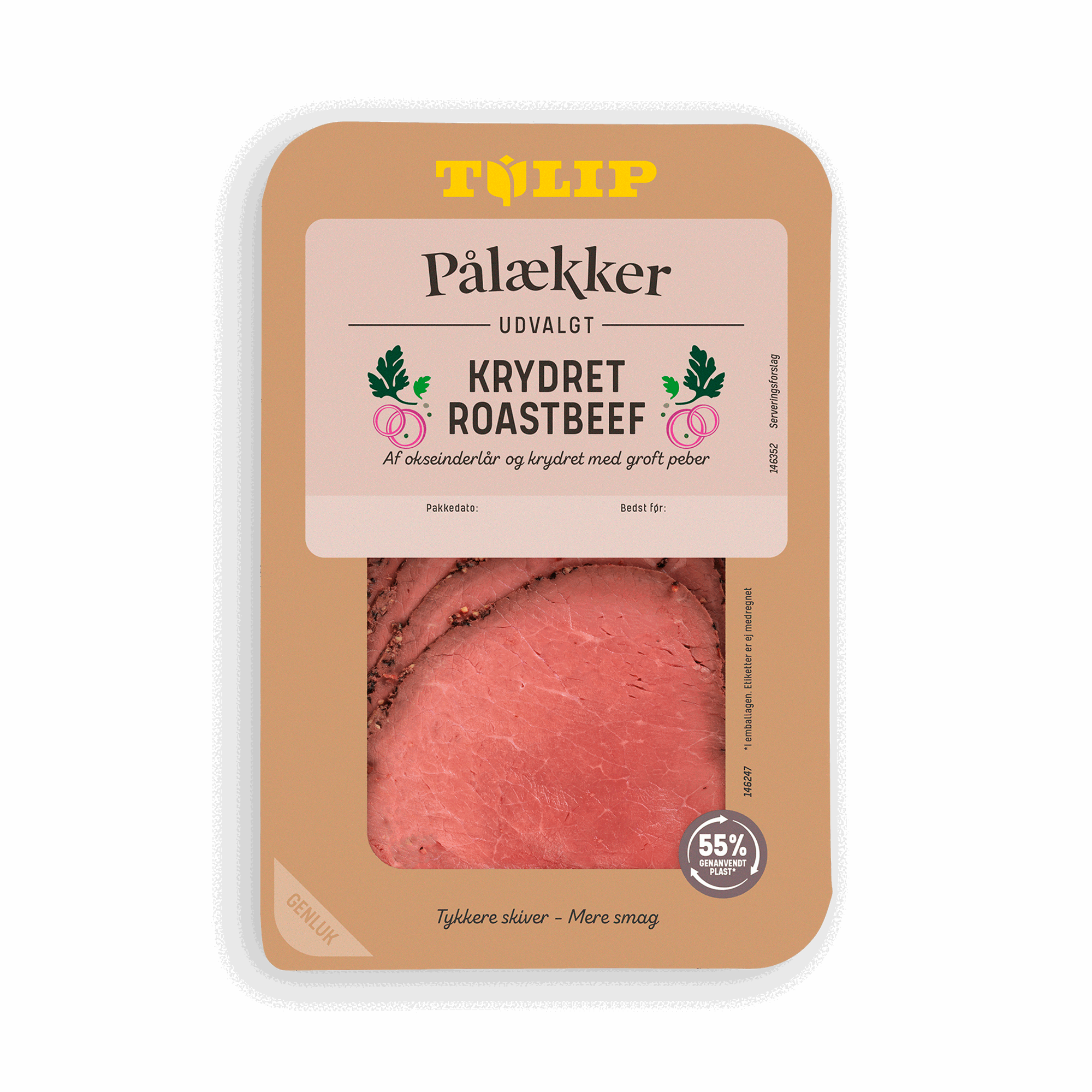 90 gTil Tulip Pålækker Kyllingebryst bruger vi udelukkende kyllingebryst af bedste kvalitet, som vi koger i flere trin. Peberblandingen er specielt udvalgt og giver produktet kant. For at give den bedste smagsoplevelse skærer vi Tulip Pålækker Kyllingebryst i tykke skiver.