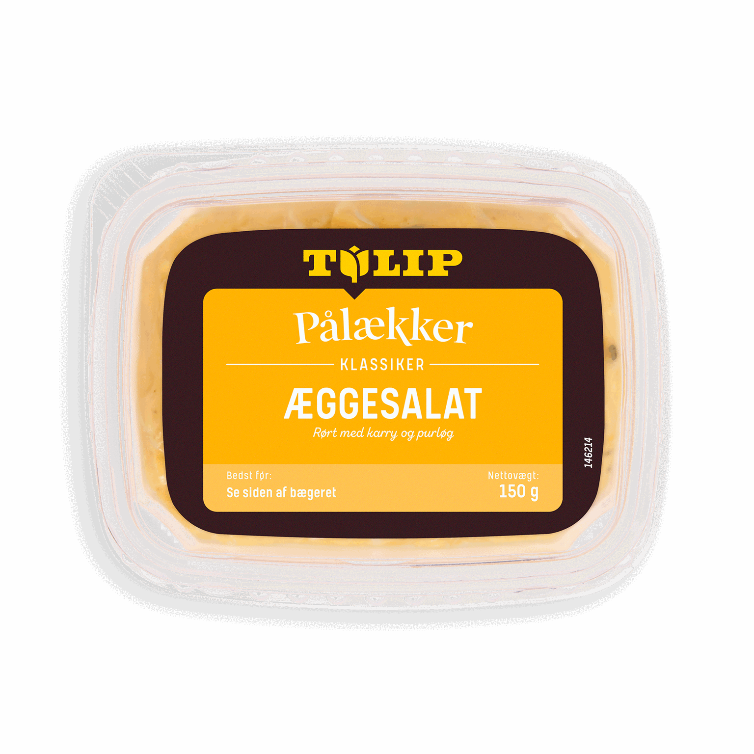 150 gTulip Pålækker Æggesalat er rørt med karry og purløg. Prøv den som topping på Tulip Pålækker Kylling med peberkant eller brug den alene på sandwichbrød.