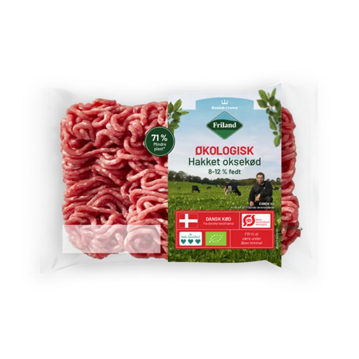 Die klassischen Schalen mit Friland Økologi Hackfleisch gehören bald der Vergangenheit an. Das neue Format – bekannt als Flowpack – bietet sowohl ökologische als auch wirtschaftliche Vorteile. Das Fleisch wird künftig in einer Beutelverpackung direkt im Werk in Holsted verpackt. „Wir machen einen großen Schritt hin zu weniger Plastik und effizienterer Produktion. Verbraucher mögen das Format, Kunden fragen danach. Gleichzeitig erfüllen wir neue Anforderungen an Verpackung und Beiträge – eine richtige Entscheidung für Umwelt und Wirtschaft“, erklärt Fabrikleiter Palle Sørensen.