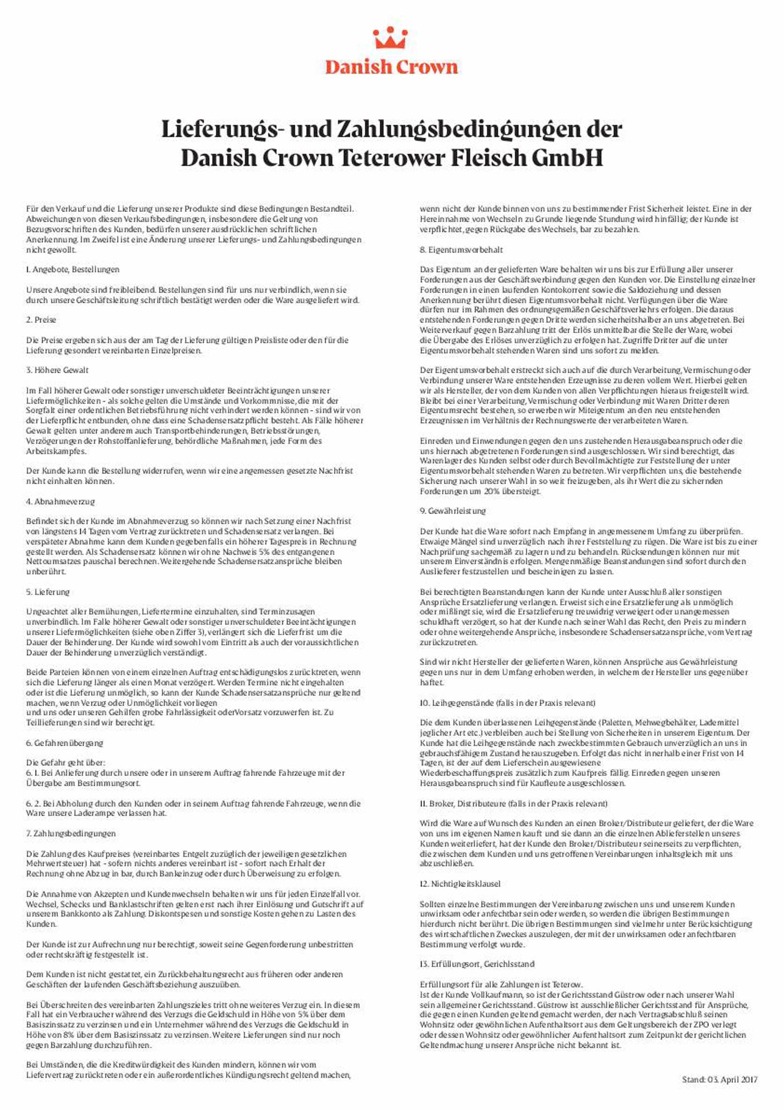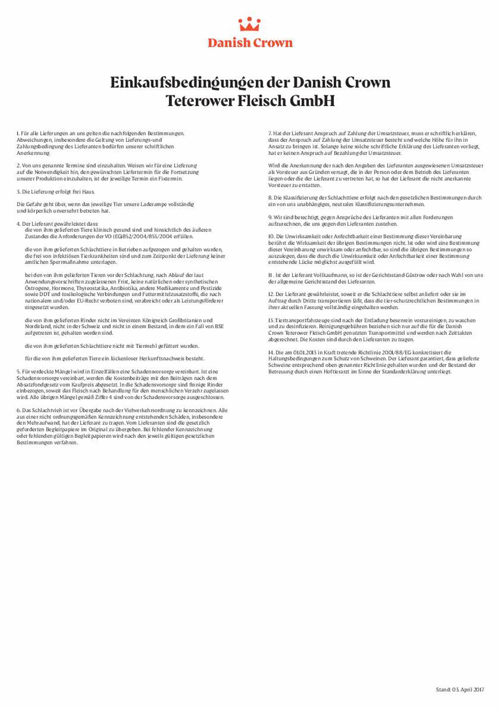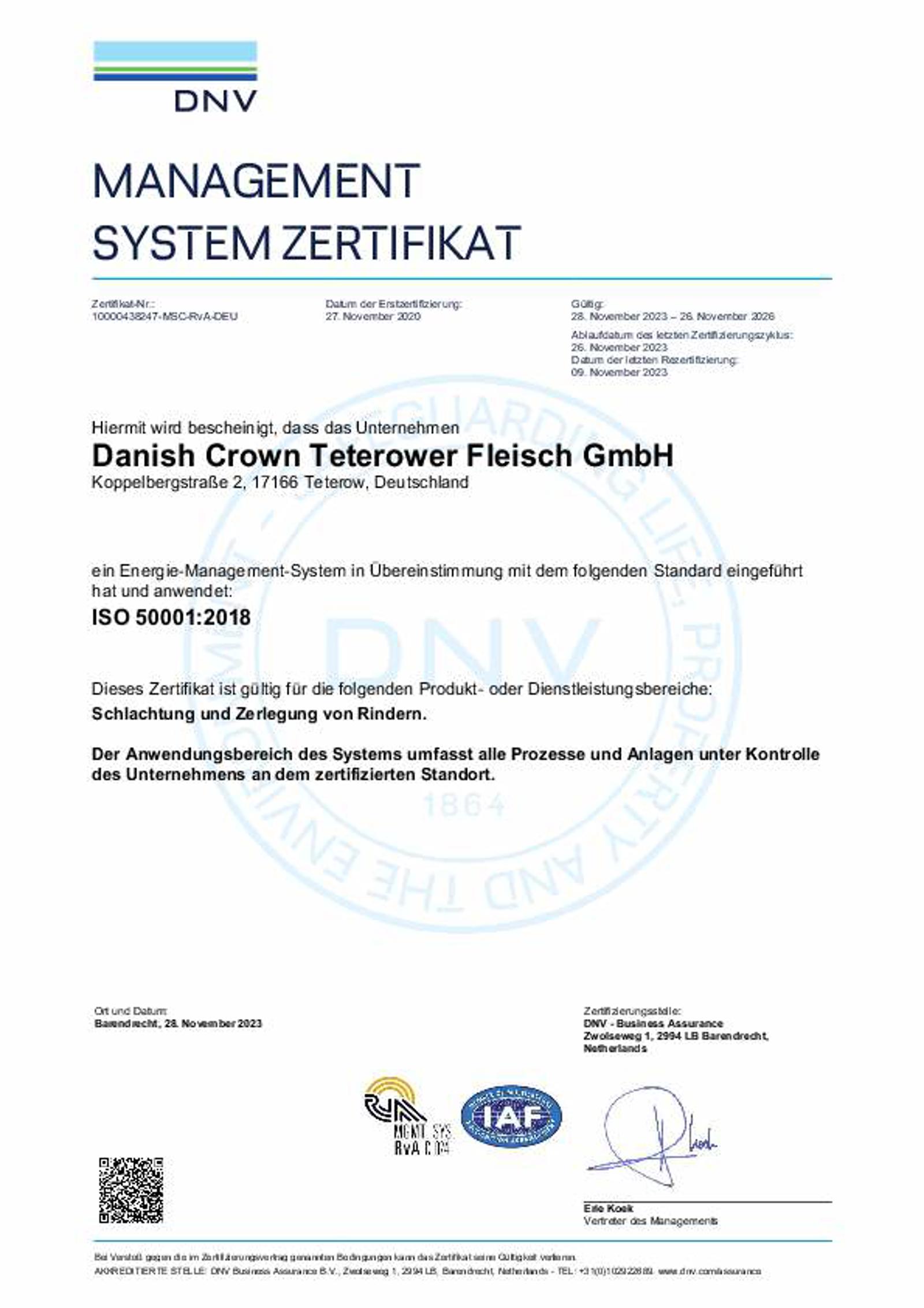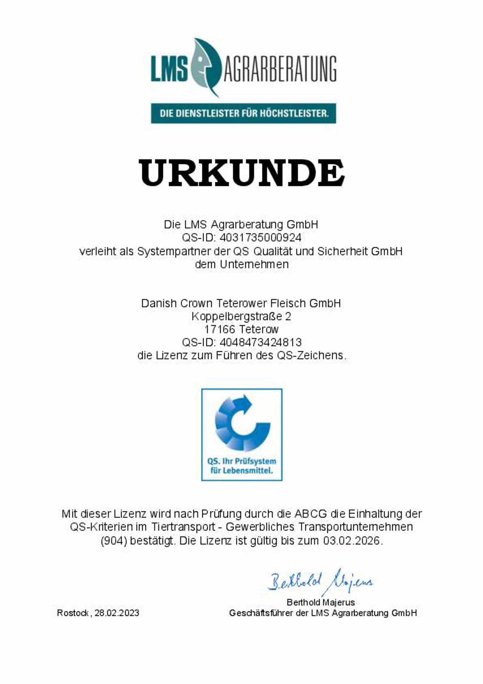 Die Danish Crown Teterower Fleisch GmbH ist nach dem Internationen Food Standard, dem Statut der QS GmbH sowie der Ökoverordnung zertifiziert. Die Qualität und Sicherheit aller Produkte sowie unsere Herstellungsprozesse werden permanent von unabhängigen, privaten Kontrollstellen überprüft. Als Partner des ökologischen Landbaus und seiner leistungsfähigen Erzeugergemeinschaften wird ein Standard garantiert, der über das Niveau der aktuellen EU-VO hinausgeht.