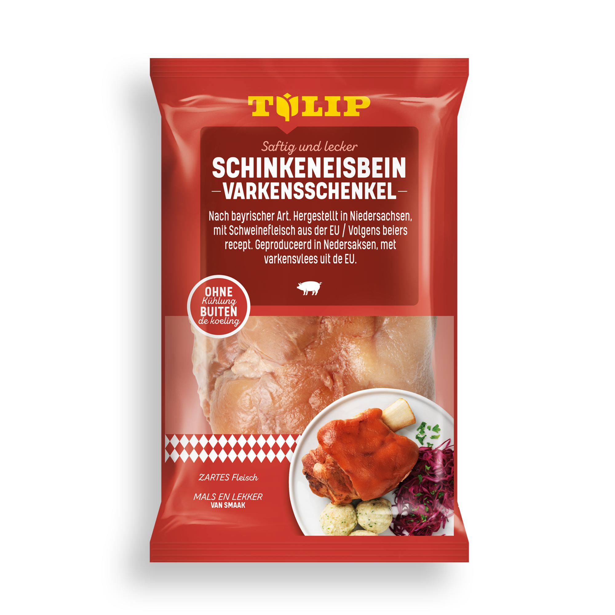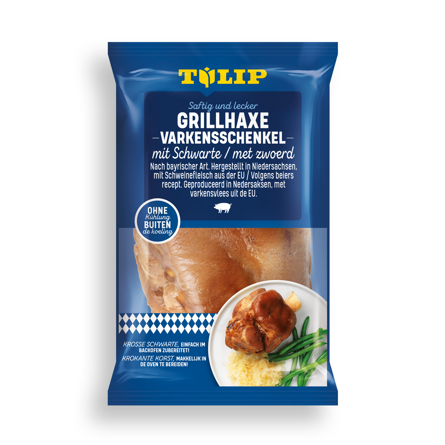 Zutaten: Schweinehaxe mit Schwarte, Salz, Dextrose, karamellisierter Zucker.