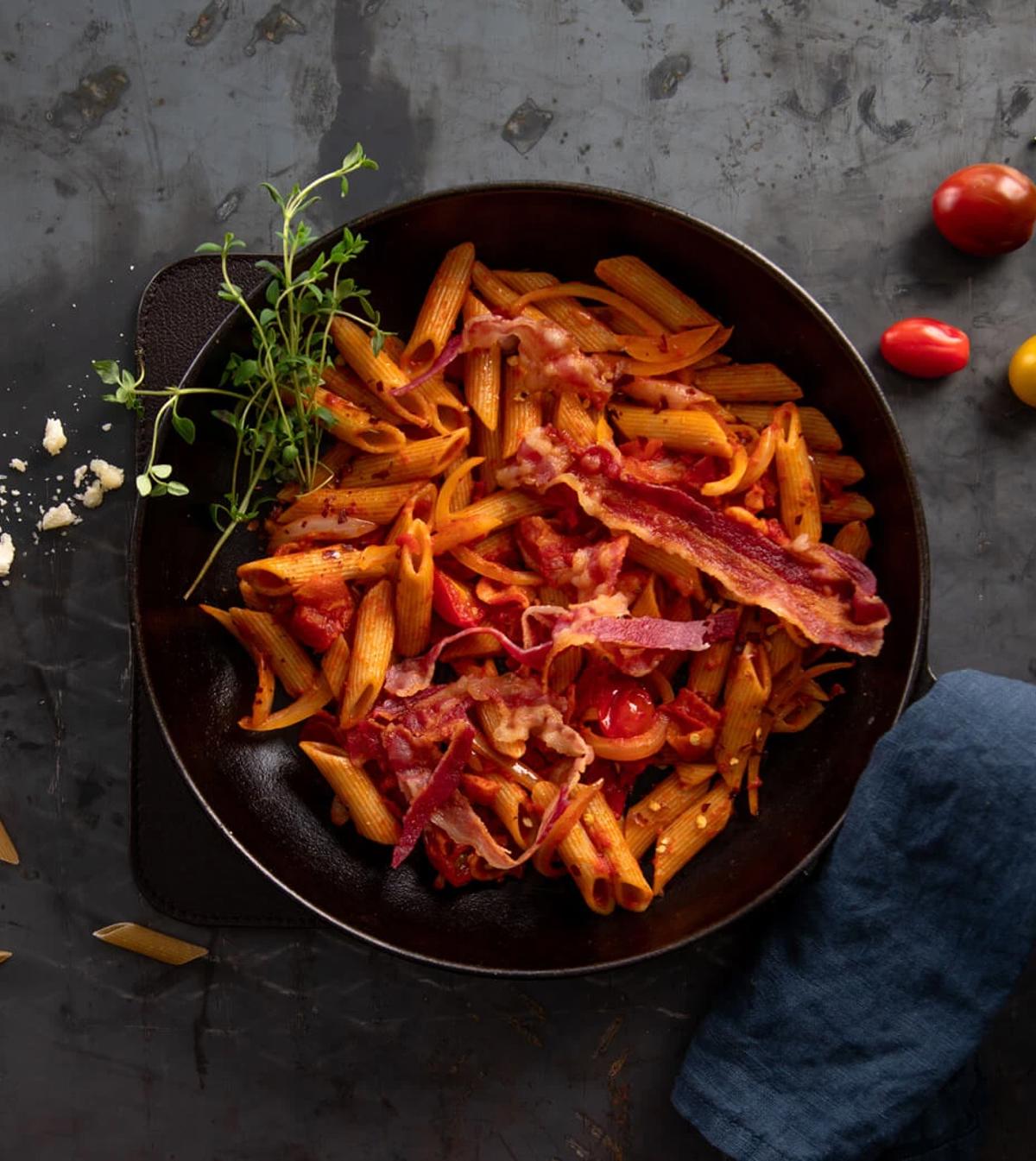 Es geht nichts über ein leckeres Pastagericht – besonders wenn es auch noch super einfach zuzubereiten ist. In diesem Rezept kombinieren wir Paprika, rote Zwiebeln und Pilze mit knusprigem Bacon in einer cremigen Sauce, die garantiert gut ankommt.