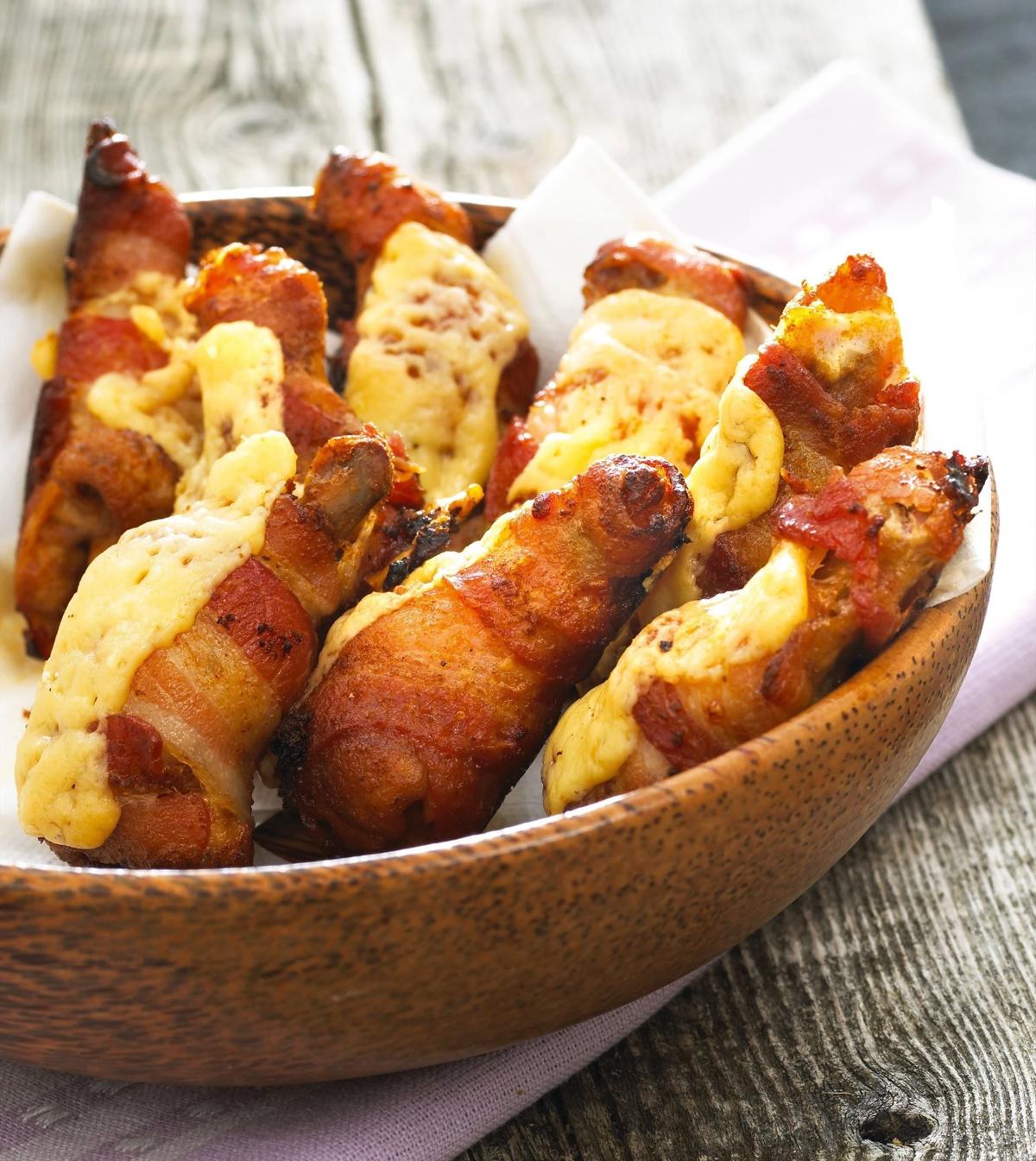 Bratwurst mit Käse und Bacon