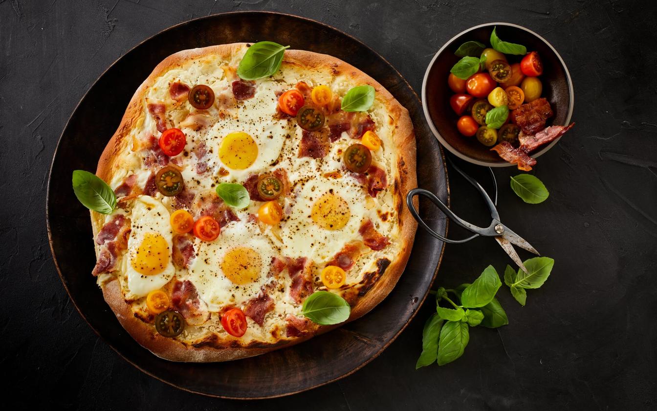 Diese Brunchpizza vereint alles, was man für einen gelungenen Start in den Tag braucht: Knuspriger Teig, cremiger Frischkäse, würziger Bacon und frisch aufgeschlagene Eier. Ob zum gemütlichen Sonntagsbrunch, als herzhafter Mittagssnack oder als Highlight beim Frühstück mit Gästen – diese Pizza bringt Abwechslung auf den Tisch und schmeckt einfach immer fantastisch!