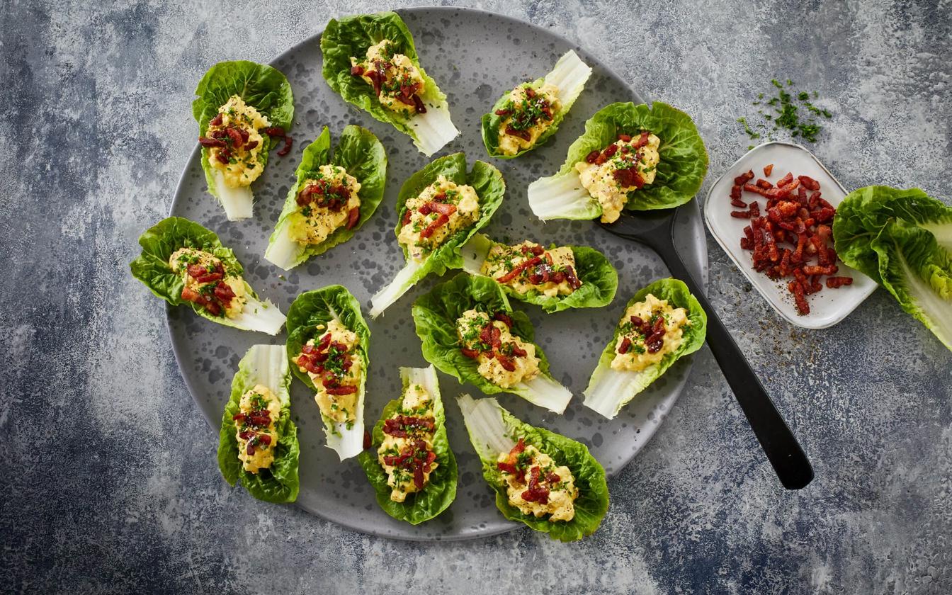 Ein klassischer Eiersalat bekommt hier ein modernes Update: Knusprige Baconstreifen, fruchtige Apfelstücke und feine rote Zwiebeln sorgen für Biss und Aroma, während Crème fraîche und Hüttenkäse für eine cremige Konsistenz sorgen. Perfekt als Brotaufstrich, leichtes Mittagessen oder raffiniertes Brunch-Highlight!