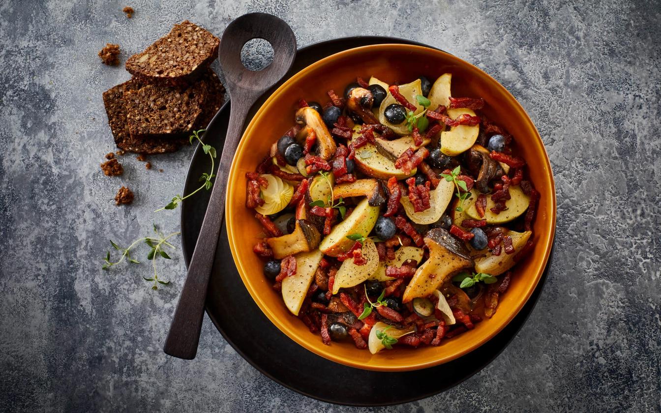 Dieses Pilzgericht kombiniert aromatische Waldpilze mit karamellisierten Schalotten, fruchtigen Äpfeln und knusprigem Bacon – perfekt als warme Vorspeise oder herbstliches Hauptgericht. Schnell gemacht und voller Geschmack!