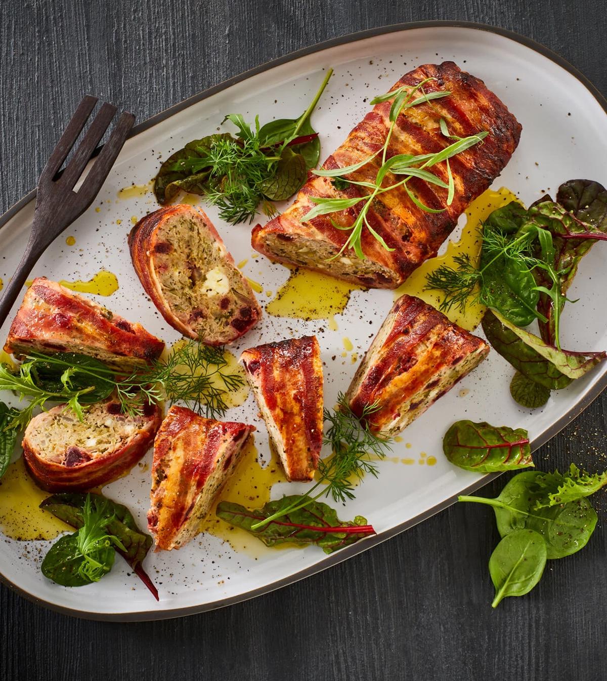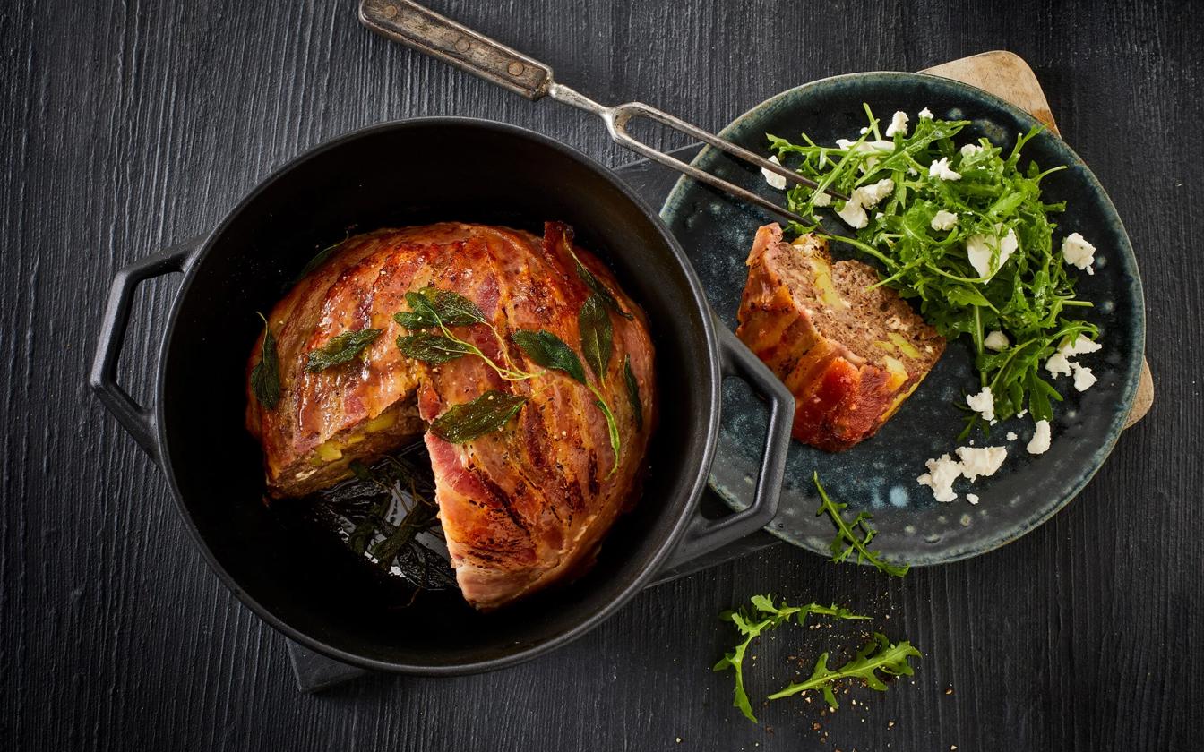 Ein herzhafter Hackbraten mal anders: In diesem Rezept treffen würziges Rinderhack, zarte Kartoffelwürfel und cremiger Feta auf knusprigen Bacon. Der Braten ist schnell vorbereitet und überzeugt mit seiner rustikalen, aber raffinierten Note – perfekt für ein gemütliches Familienessen oder wenn Gäste kommen.
