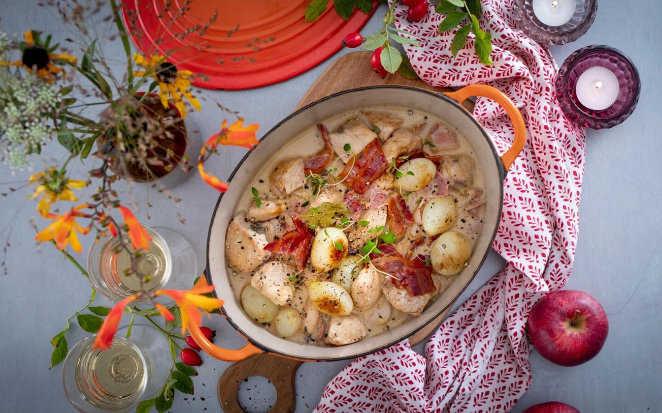 Dieses Gericht kombiniert zartes Hähnchenfleisch mit knusprigem Bacon in einer cremigen Senfsauce – einfach, rustikal und unglaublich aromatisch. Serviert mit gekochten Kartoffeln und frischem Salat ist es ein perfektes Abendessen für die ganze Familie.