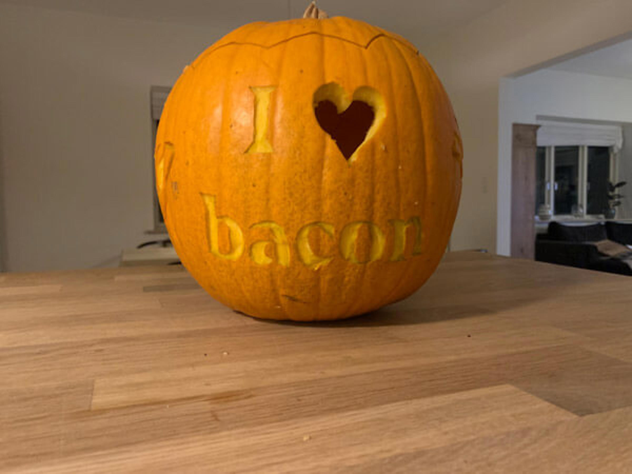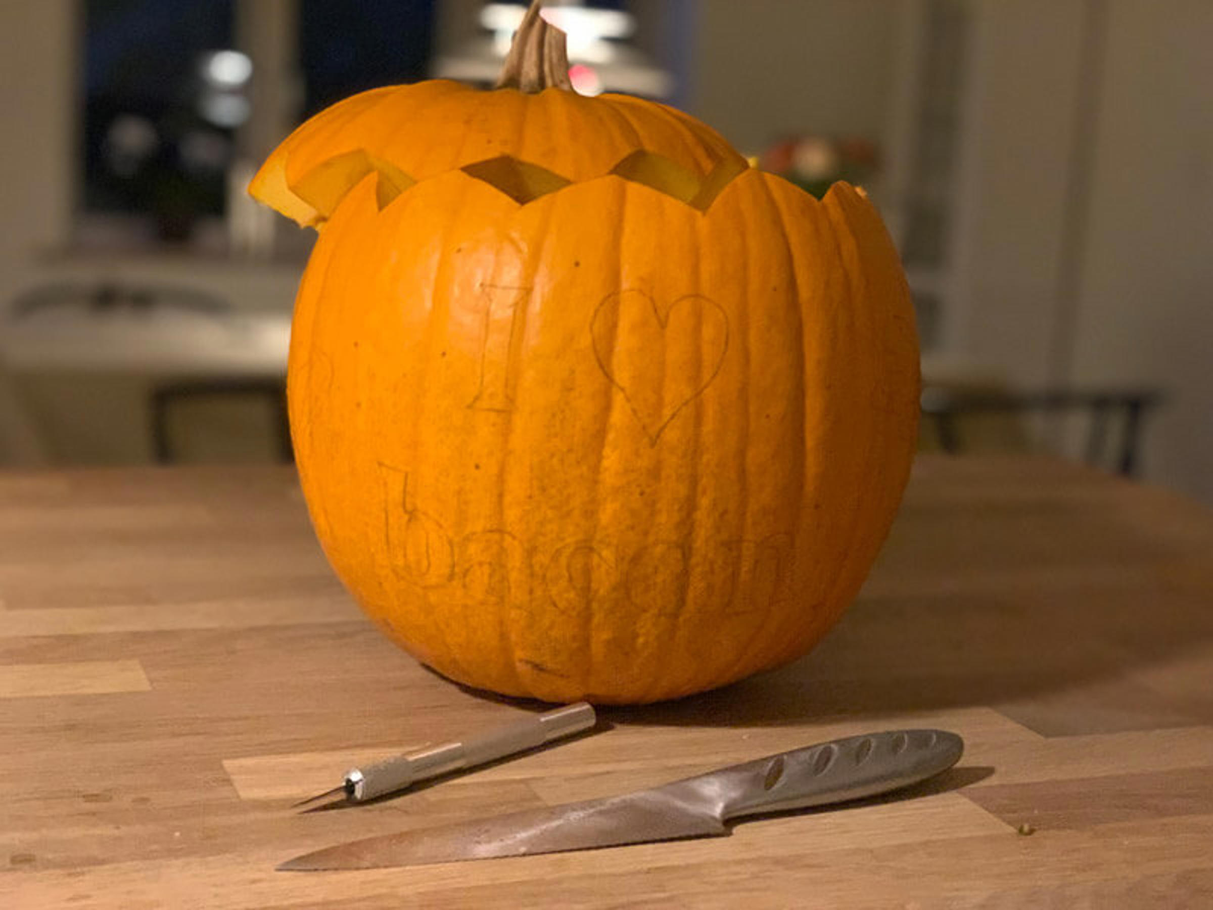 Kürbis schnitzen ist eine lustige Aktivität, für die ganze Familie. Es gibt viele Ideen den Kürbis zu gestalten, da Du viele verschiedene Arten von Schnitten machen kannst, zum Beispiel mit einem Text wie „Ich liebe Bacon“. Du kannst auch die beliebten Kürbisgesichter oder Kürbisköpfe schnitzen, die entweder gruselig oder süß aussehen können - es liegt ganz bei Dir.