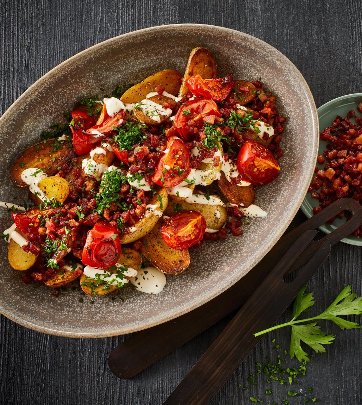 Dieses bunte Grillgericht bringt Farbe und Geschmack auf den Teller: Knusprige Kartoffel-Wedges treffen auf würzig mariniertes Grillgemüse und werden perfekt ergänzt durch zarte Tulip Mini-Haxen. Ein unkompliziertes, aber geschmackvolles Rezept – ideal für laue Sommerabende, Grillpartys oder das gemütliche Familienessen im Freien.