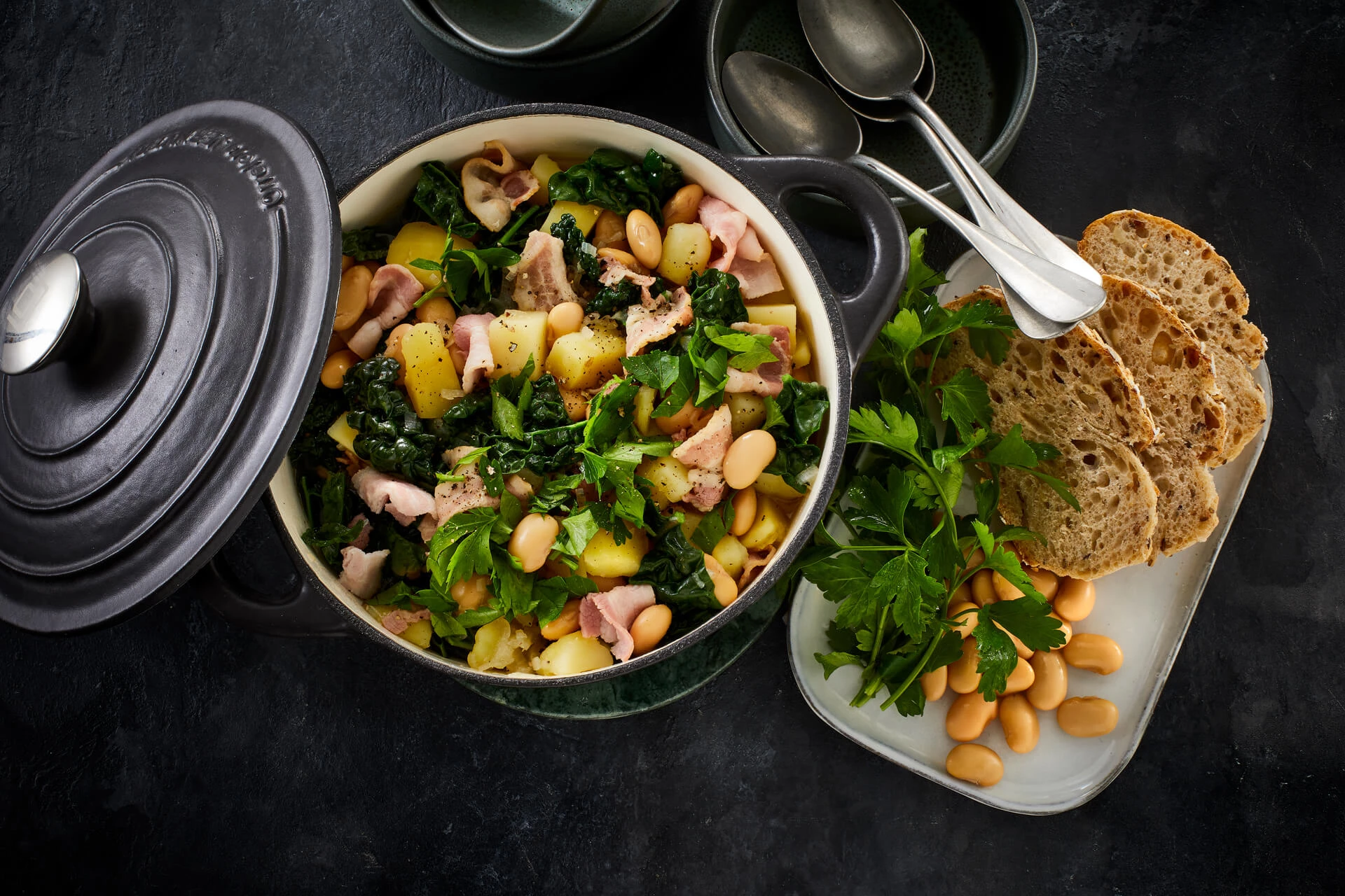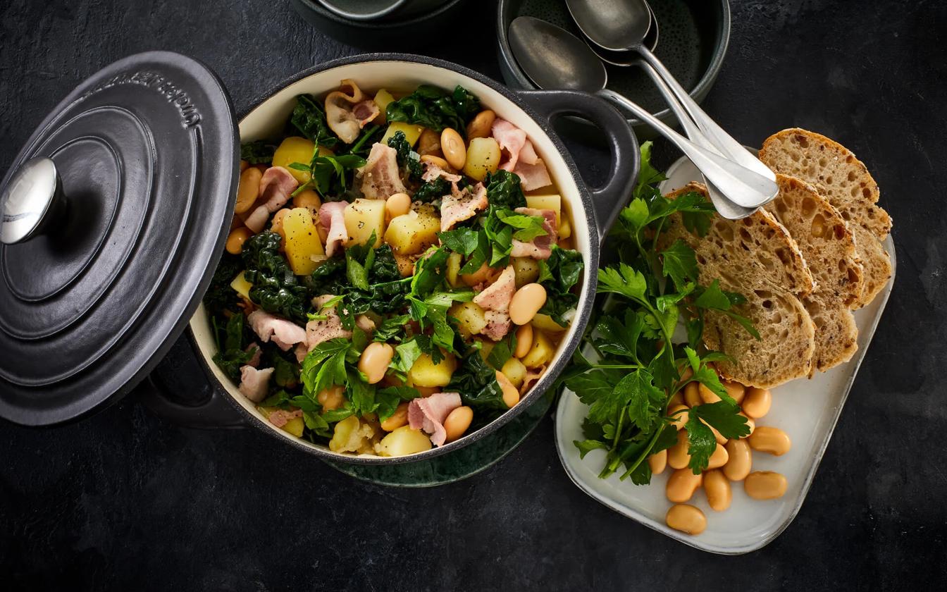 Diese klare Brühe mit knusprigem Bacon, weißen Bohnen und Palmkohl ist ein herzhafter Seelenwärmer. Schnell gemacht, voller Geschmack und perfekt für die ganze Familie – serviert mit rustikalem Brot wird daraus ein echtes Wohlfühlessen.