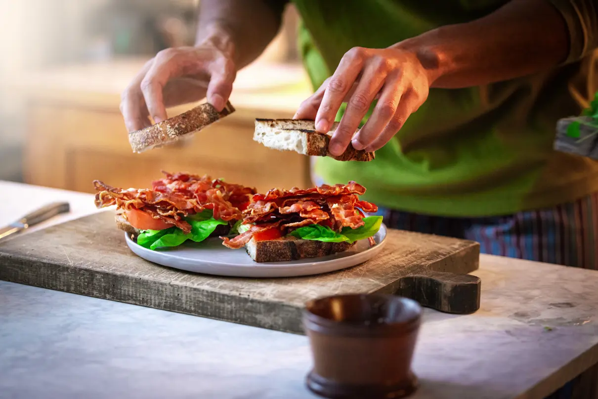 BLT-Sandwich mit Bacon, Salat und Tomate