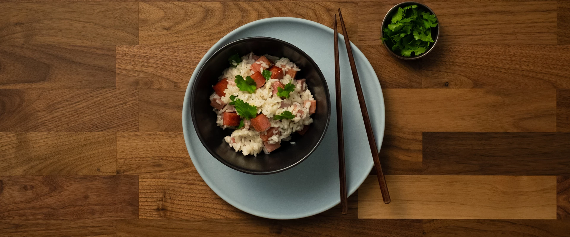 Try out this easy pork and rice recipe. This flavorful meal combines the best of Asian cuisine with well-cooked rice and vegetables, pork luncheon meat, creamy coconut milk, and a balanced taste of ginger.