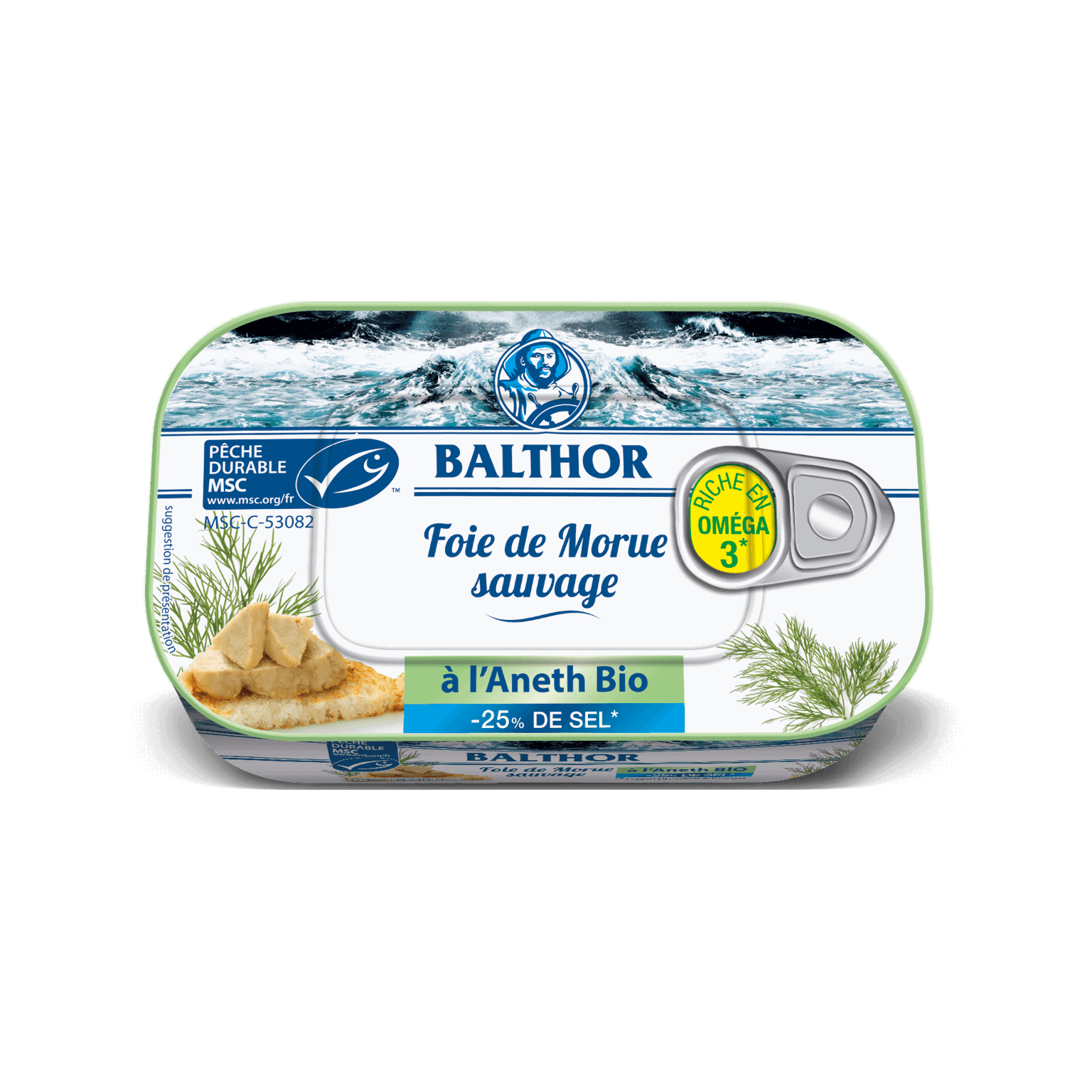 Foie de morue 99% (Ghadus morhua), sel, ANETH BIO.