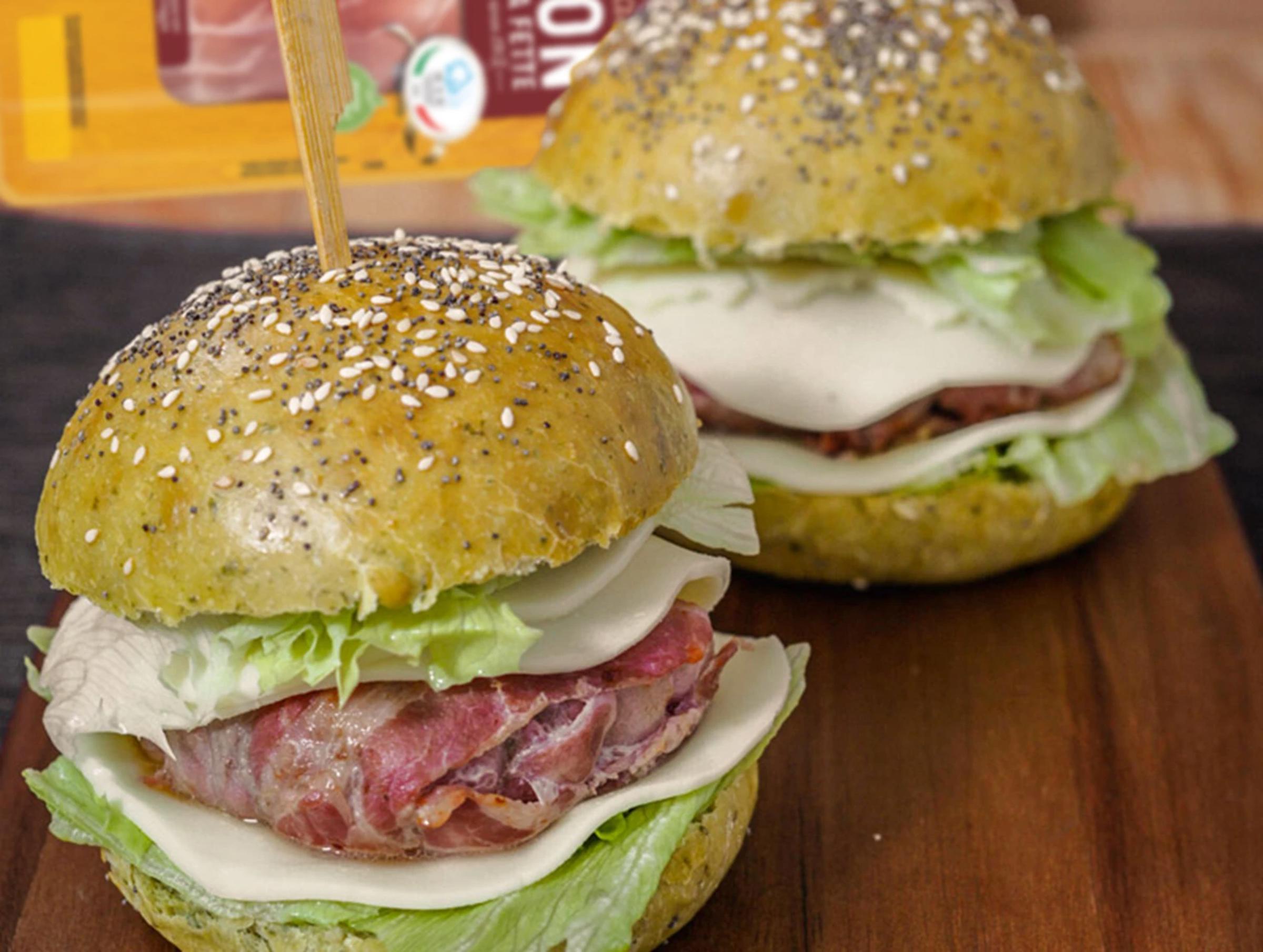 I Burger Buns di @Roberta con hamburger avvolto nel Bacon Tulip e guarniti con lattuga e formaggio a fette sono inarrivabili: provare per credere!
