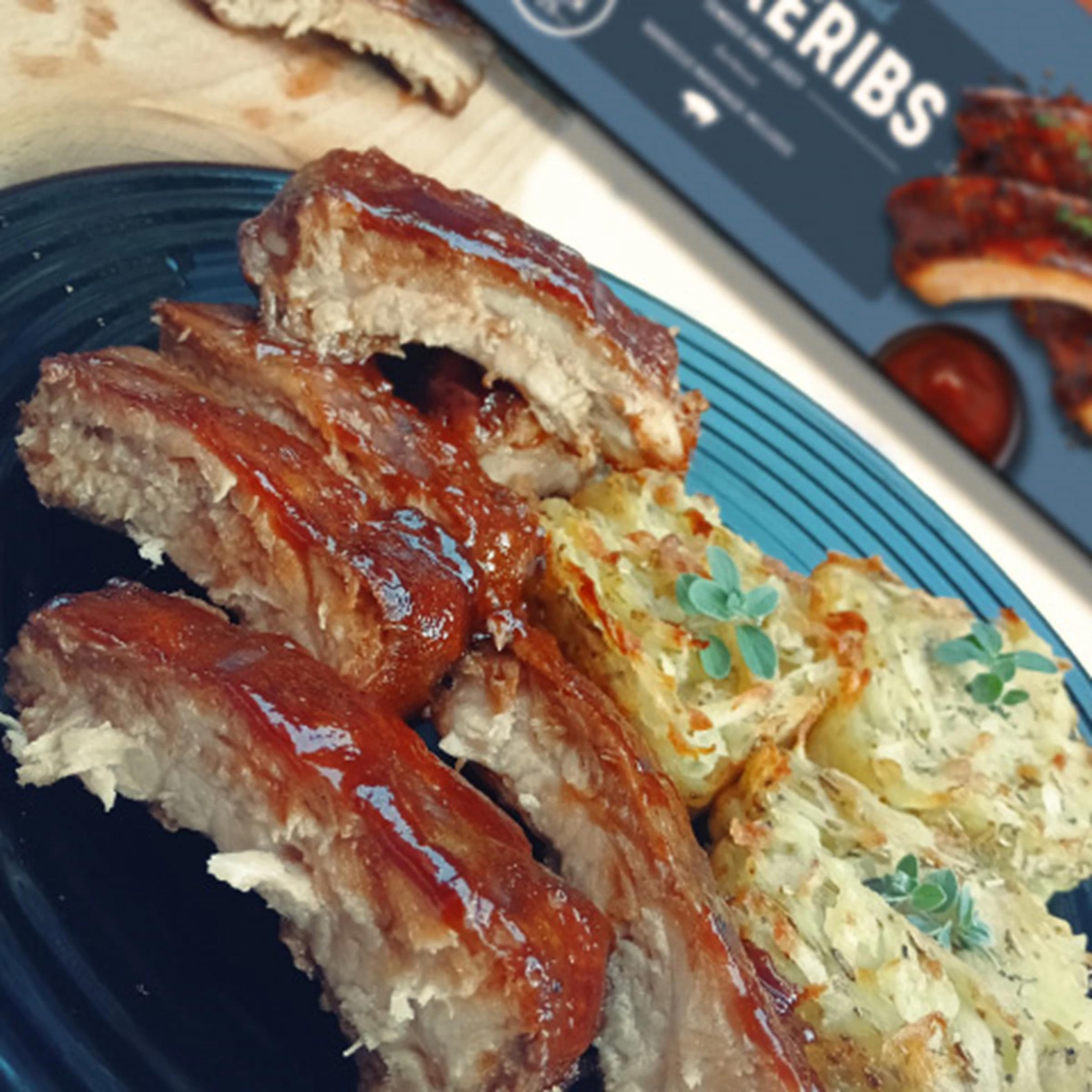 - Preriscaldare il forno in modalità grill a 200 g. Estrarre le SpareribsTulip dalla loro busta protettiva e riscaldare in forno per 20-25 minuti. Dopo i primi 10 minuti spennellare con la salsa barbeque.
