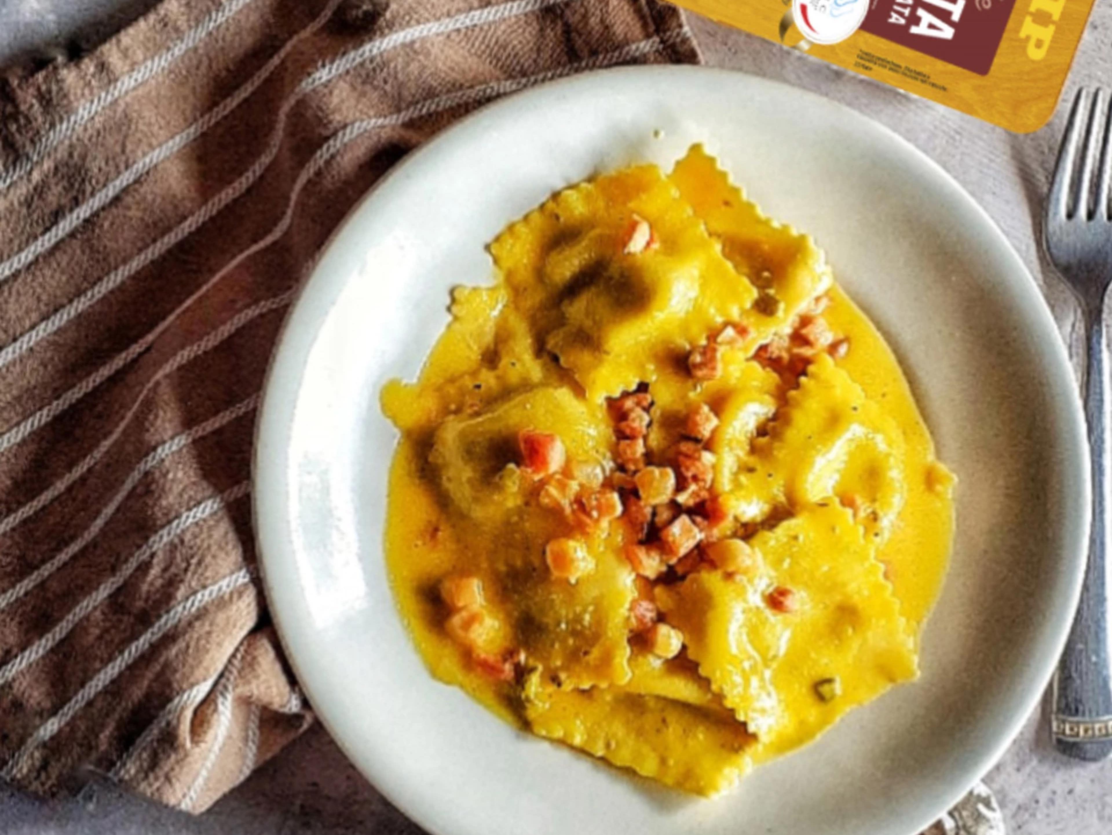 - Mescolare bene, poi aggiungere la Pancetta dolce Tulip e mescolare di nuovo e adagiare metà
