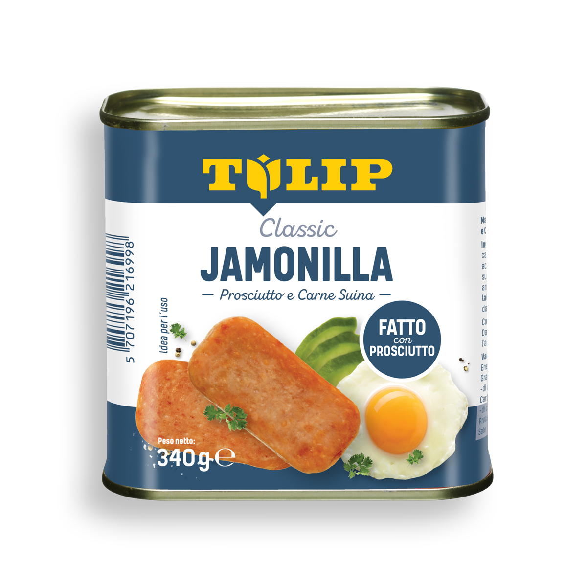 250 gLa nuova carne di suino in scatola Tulip al gusto di Bacon. Un sapore unico per rendere speciali tutti i vostri piatti.