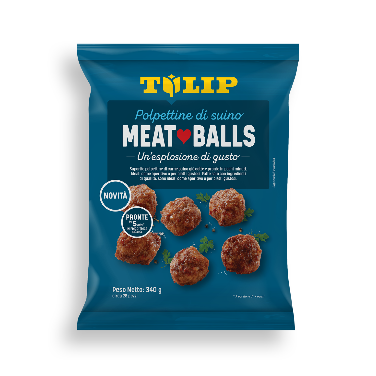 340 gLe nuove Meatballs di Tulip sono le gustose polpettine di suino da 13g ideali come aperitivo o per un delizioso piatto unico. Surgelate IQF, sono già cotte e pronte in soli 5 minuti in friggitrice ad aria.