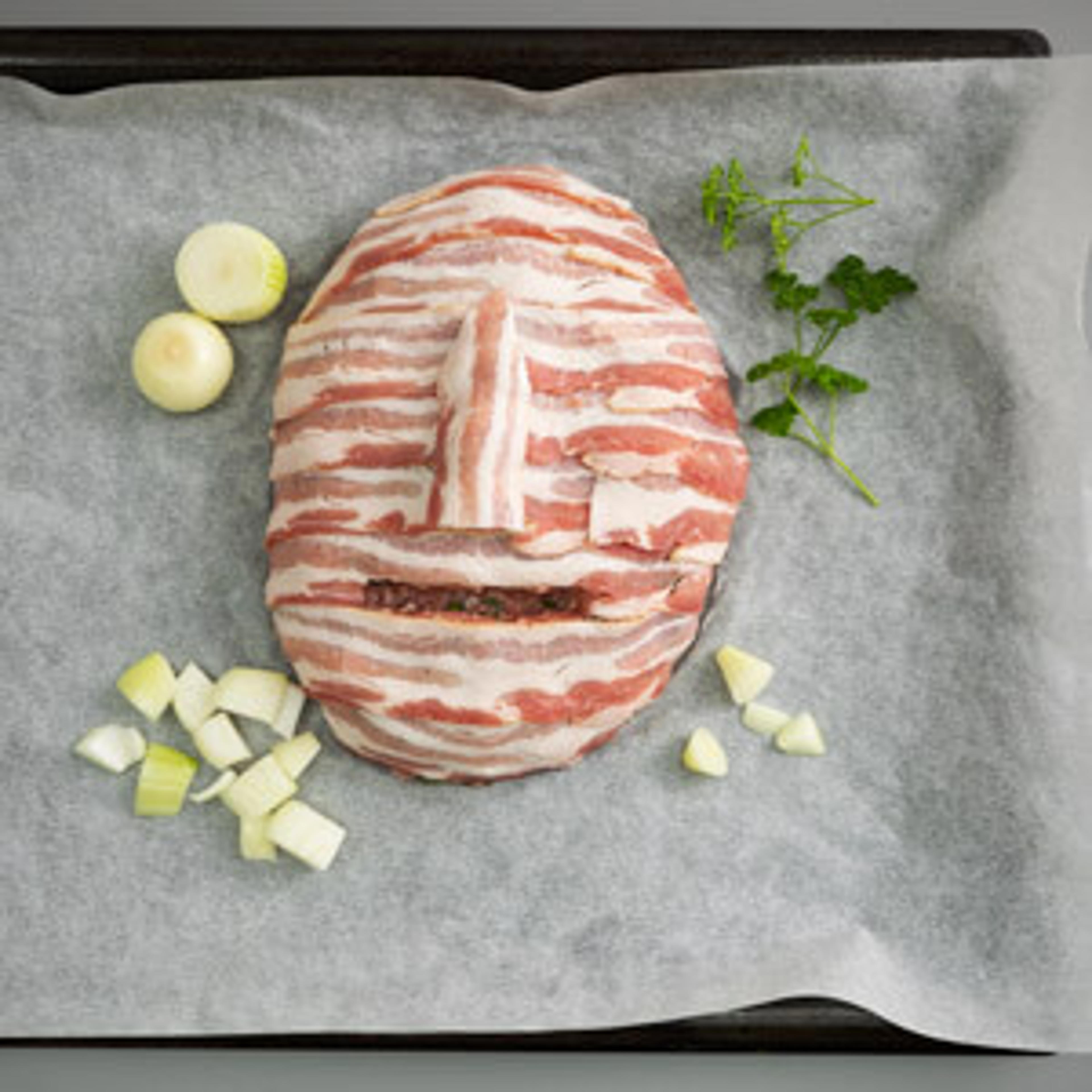 Dopo aver modellato la carne macinata, è importante adagiare le fette di bacon spingendole bene fin sotto la base. In questo modo, si preserverà il succo della carne durante la cottura in forno. Potete aggiungere al ripieno anche erbe aromatiche a piacere, come rosmarino fresco o timo. In alternativa alla carne macinata si possono usare anche con le verdure, ad esempio pastinache e carote al forno.