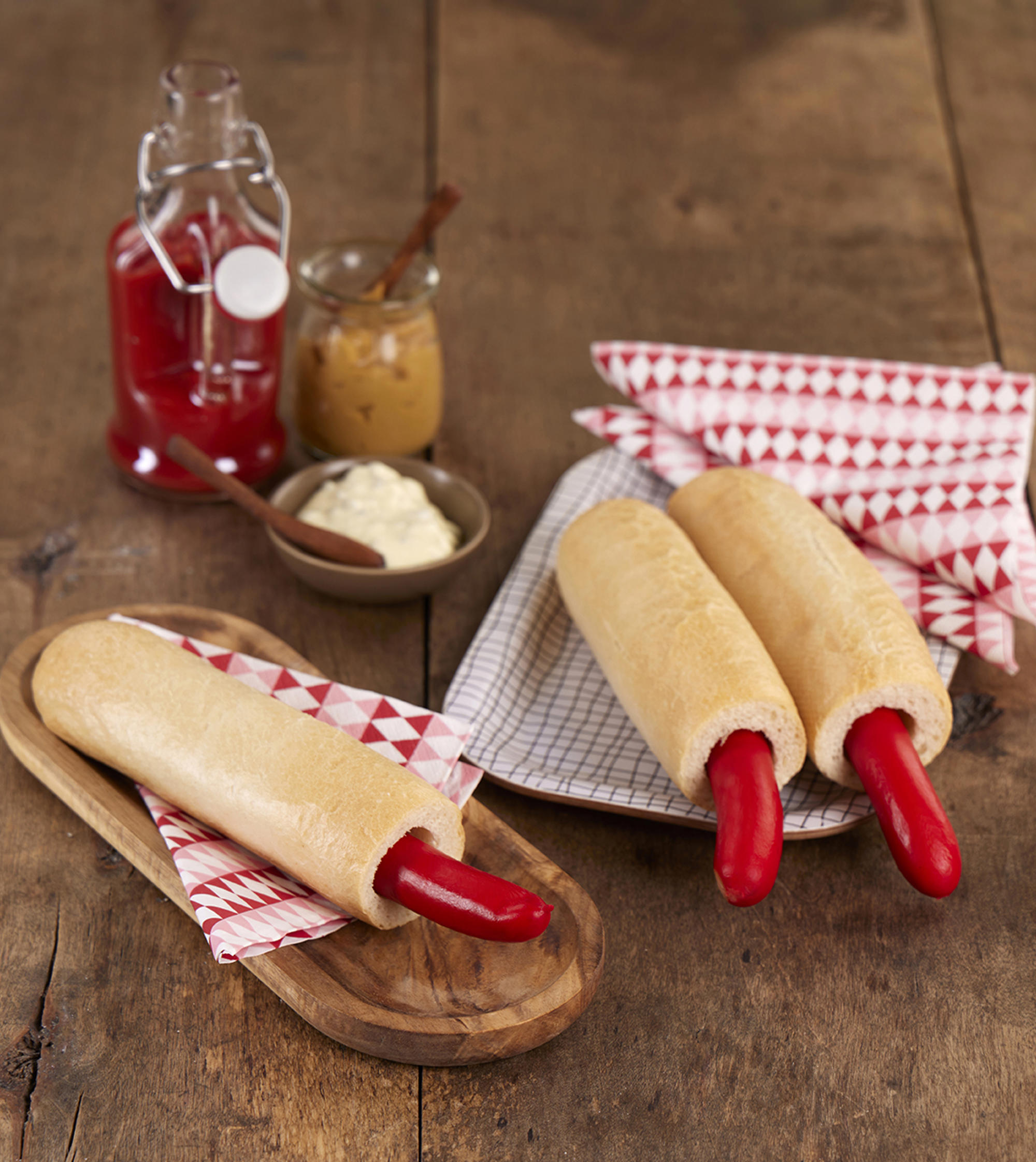 Ettersom pølseboder er lett å finne i Danmark, anser mange at røde pølser er en av landets nasjonalretter. Pølsene er farget med et tradisjonelt rødt fargestoff. Ifølge tradisjonen skal røde pølser trekker i varmt vann og serveres med remulade, sennep eller ketchup, stekt løk og sylteagurk.