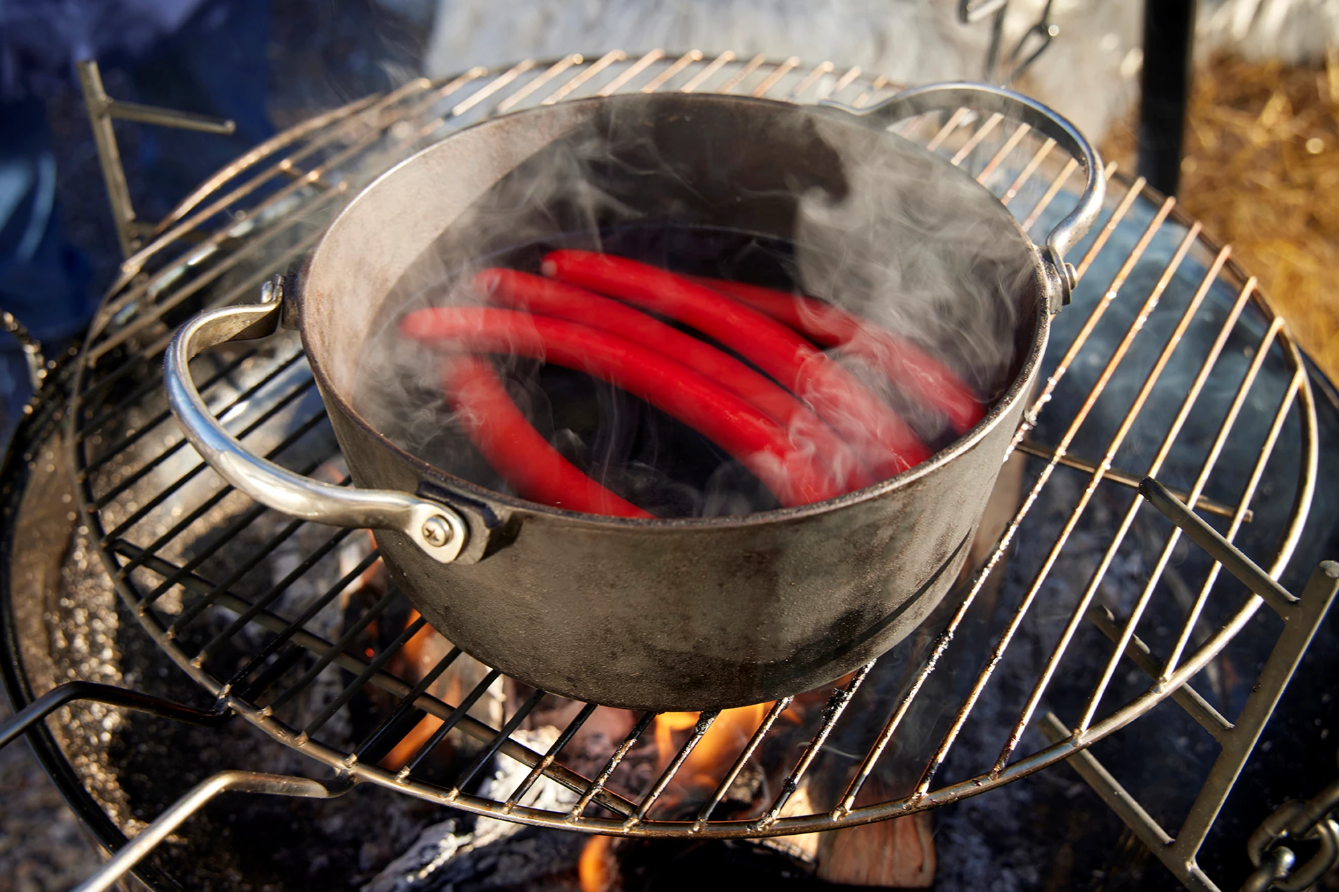 Ettersom pølseboder er lett å finne i Danmark, anser mange at røde pølser er en av landets nasjonalretter. Pølsene er farget med et tradisjonelt rødt fargestoff. Ifølge tradisjonen skal røde pølser trekker i varmt vann og serveres med remulade, sennep eller ketchup, stekt løk og sylteagurk.