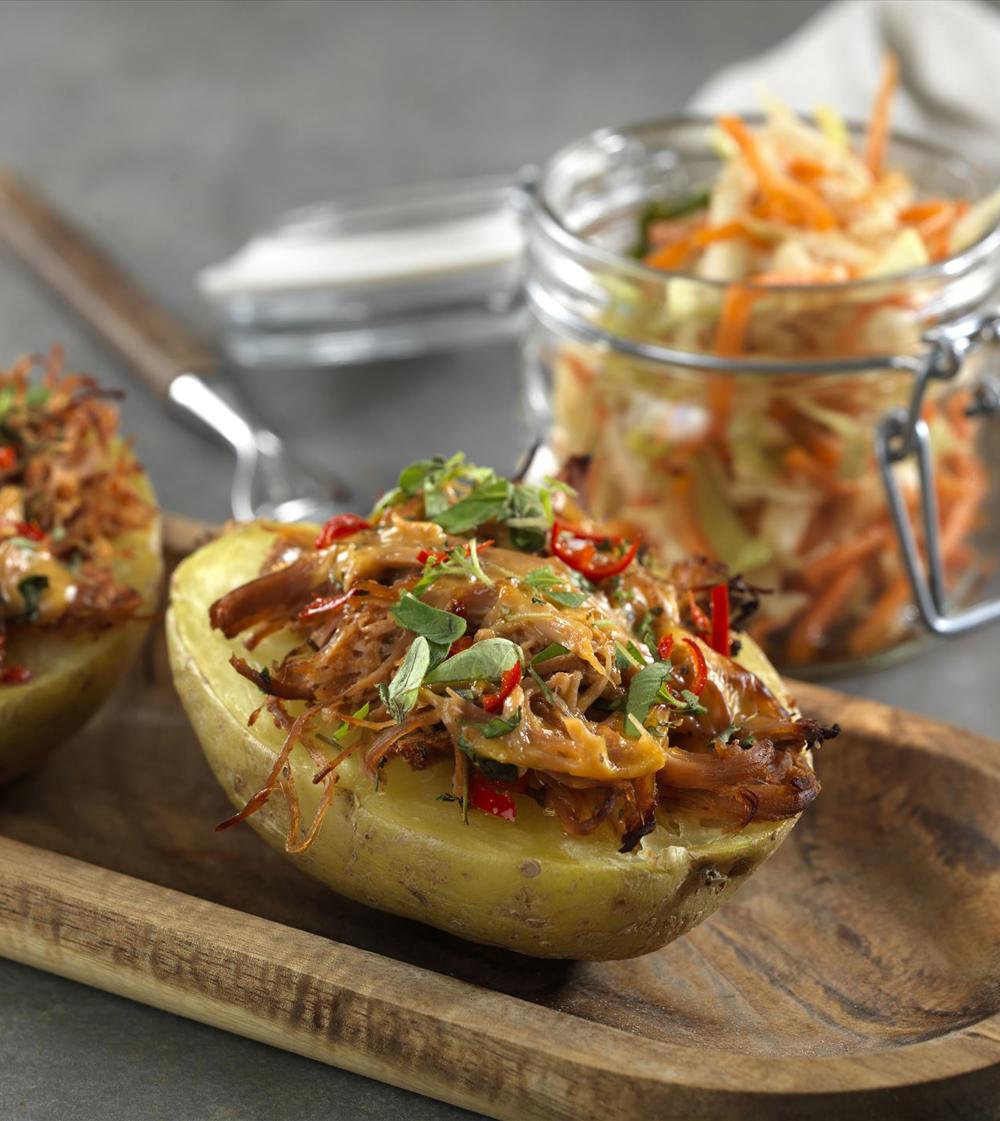 Bakt potet toppet med Pulled Pork