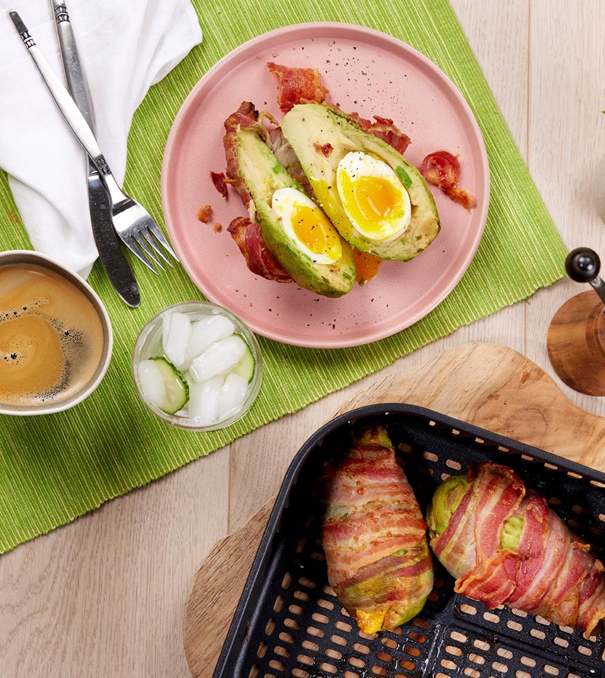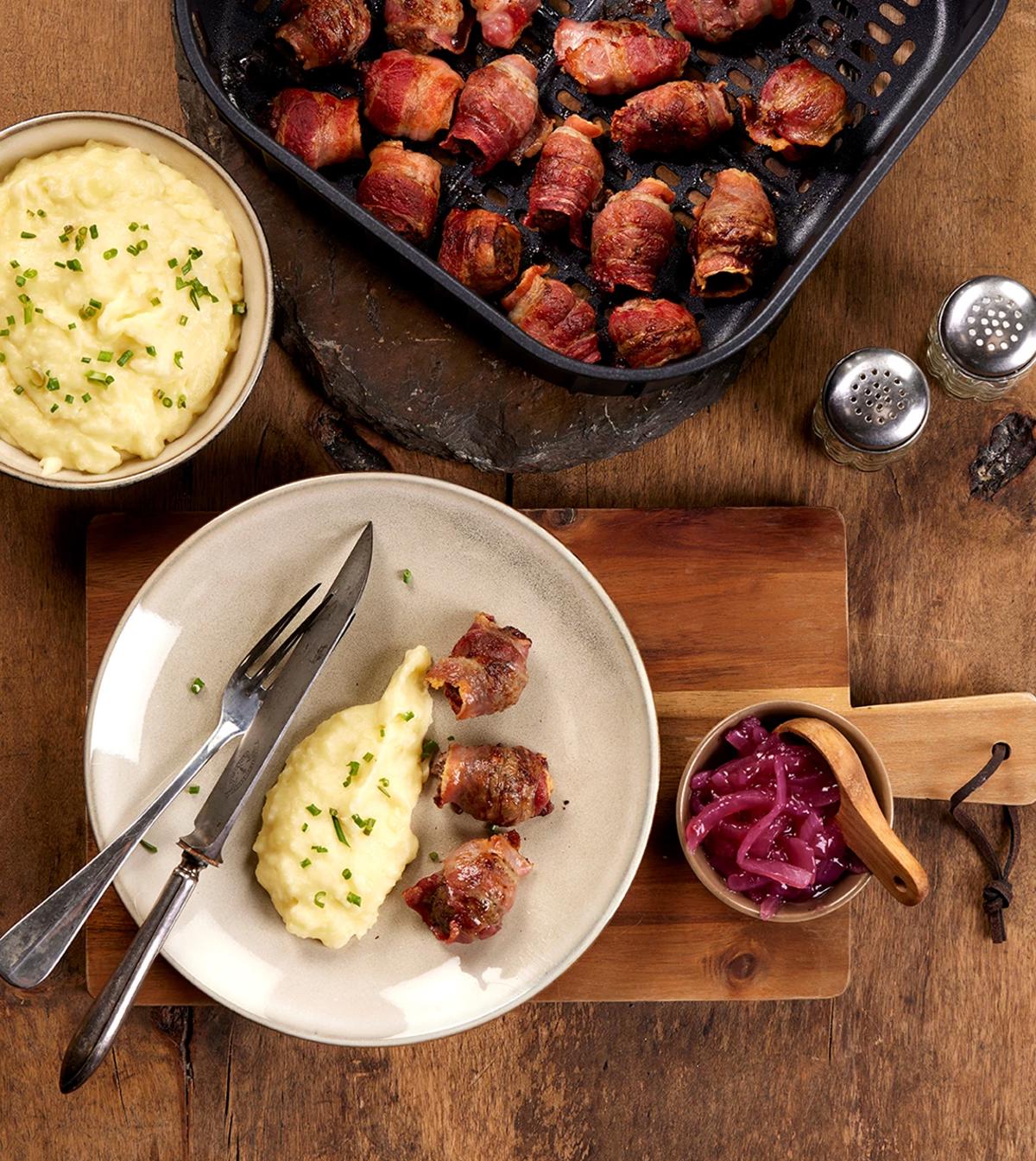 Prøv vår oppskrift på saftig baconpakket kyllingfilet fylt med kremet mozzarella og sprø søtpotetbiter, alt tilberedt i airfryeren for den perfekte crunchen. Et måltid som får vann i munnen!