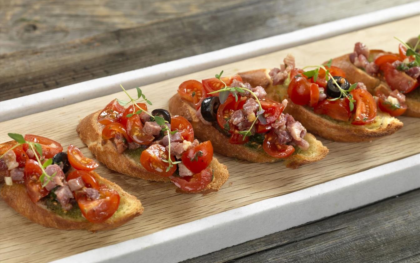 Bruschetta med Tulip Bacon og tomat er en smakfull og sprø forrett eller snacks som kombinerer det beste fra middelhavskjøkkenet med sprøstekt bacon. Her får du en nydelig tomat- og olivenblanding med hvitløk og basilikum, toppet på ristede baguetteskiver penslet med hjemmelaget urtedressing. Perfekt til tapasbordet, som forrett eller en liten koserett på late helgedager.