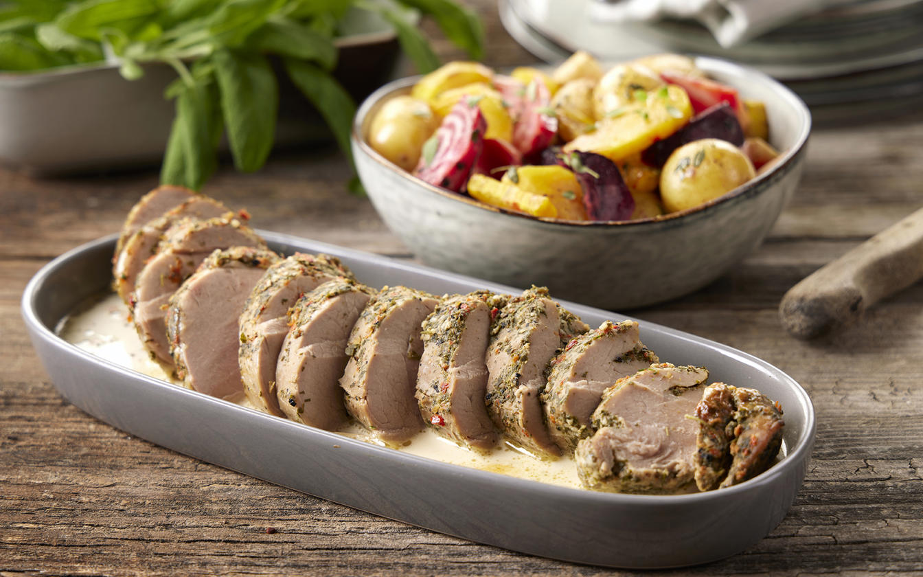 Denne smakfulle retten kombinerer mør indrefilet av svin med ovnsbakte beter og småpoteter – alt vendt i honning, olje og frisk timian. En kremet fløtesaus gir ekstra fylde og dybde til kjøttet, som får en saftig konsistens etter kort tid i ovnen. En enkel, men imponerende middag perfekt for helgekos eller når du vil unne deg noe ekstra godt.
