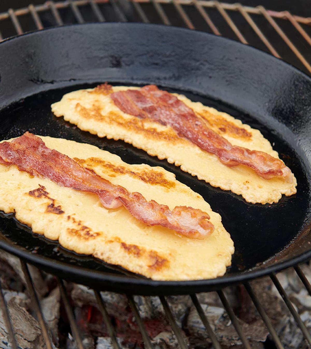 - Har du lite med tid kan du fint bruke Tulip ferdigstekt bacon. Bruk den kald eller legg den 1-2 minutter i den varme stekepannen når siste pannekake er stekt.