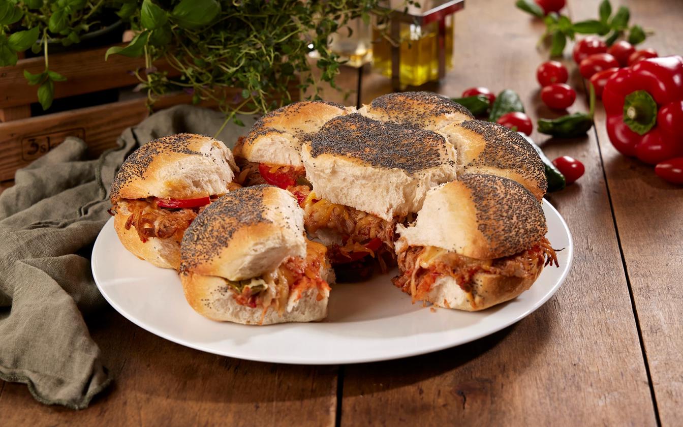 - Sliders: Bruk det du har liggende som rundstykker, baguetter eller brødskiver.