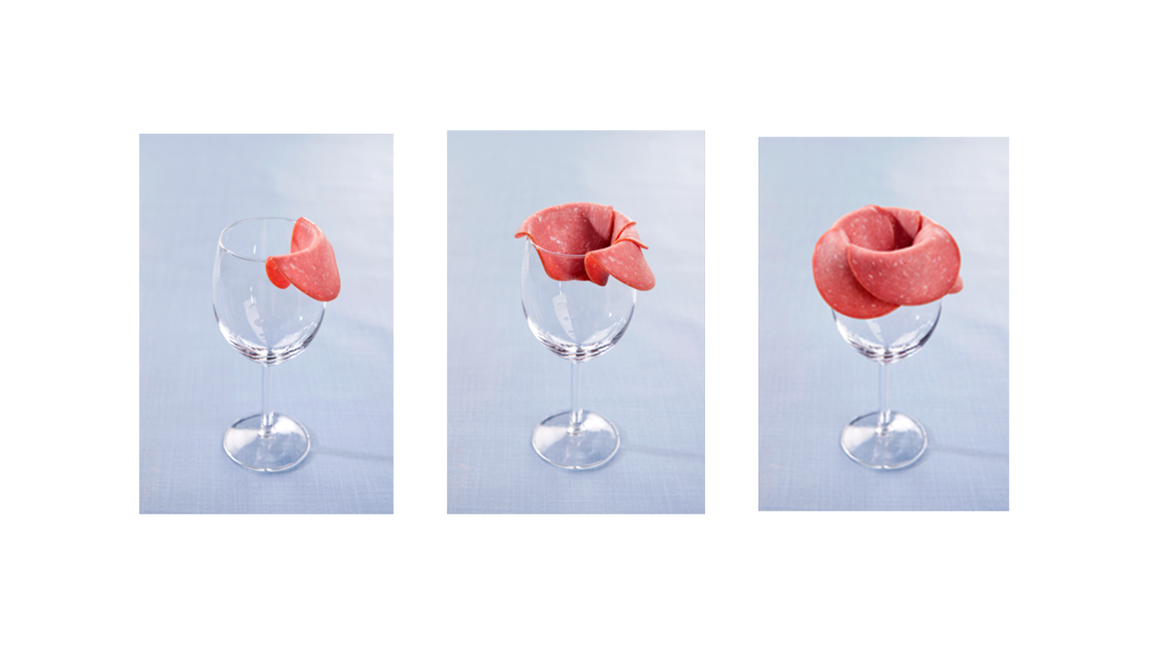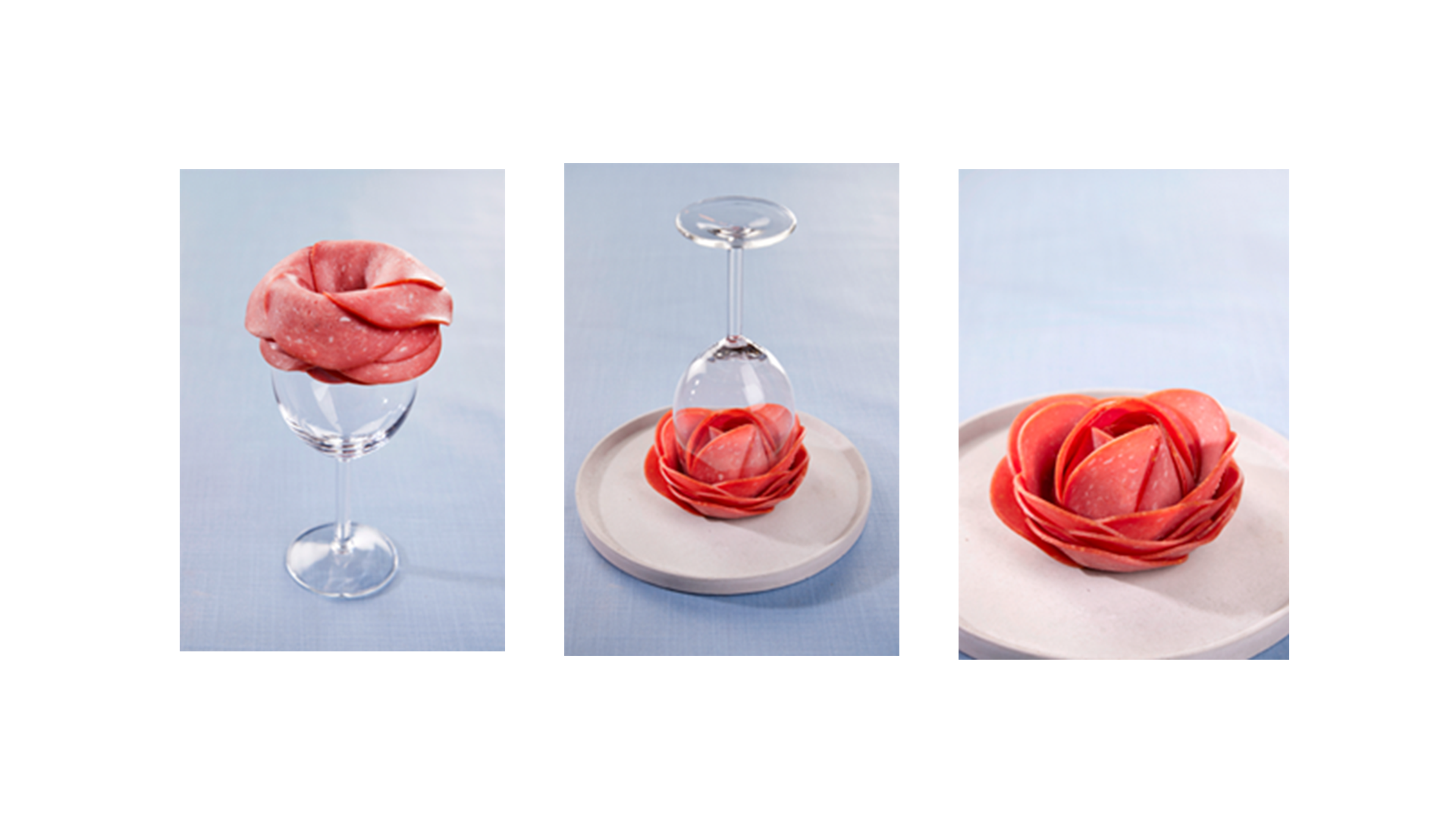 Se bildene av hvordan du lager din salami rose under tilberedningen.