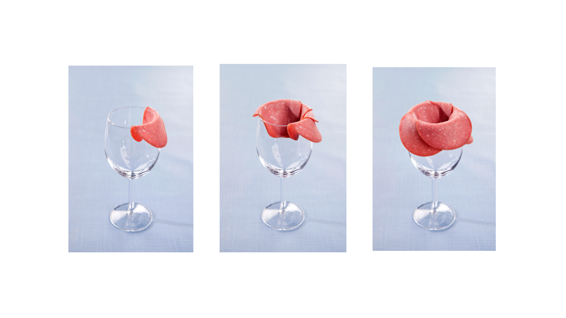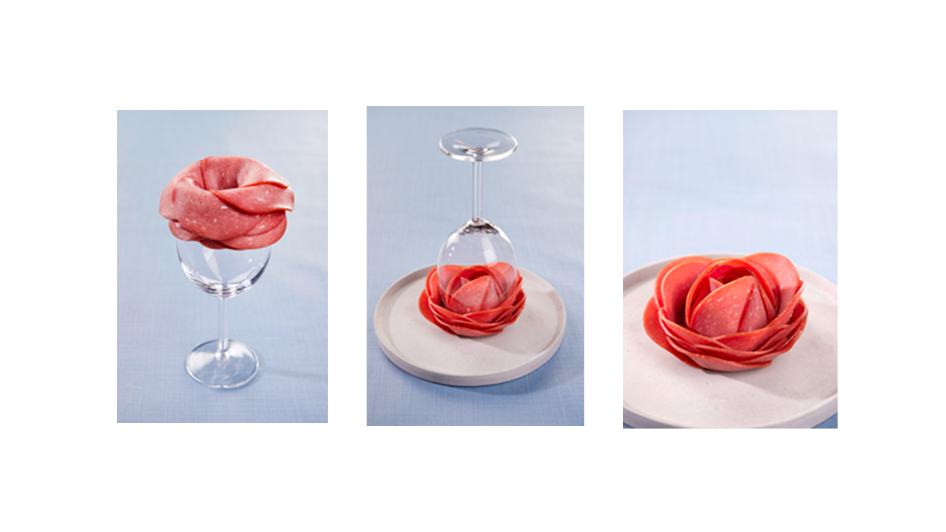 Se bildene av hvordan du lager din salami rose under tilberedningen.
