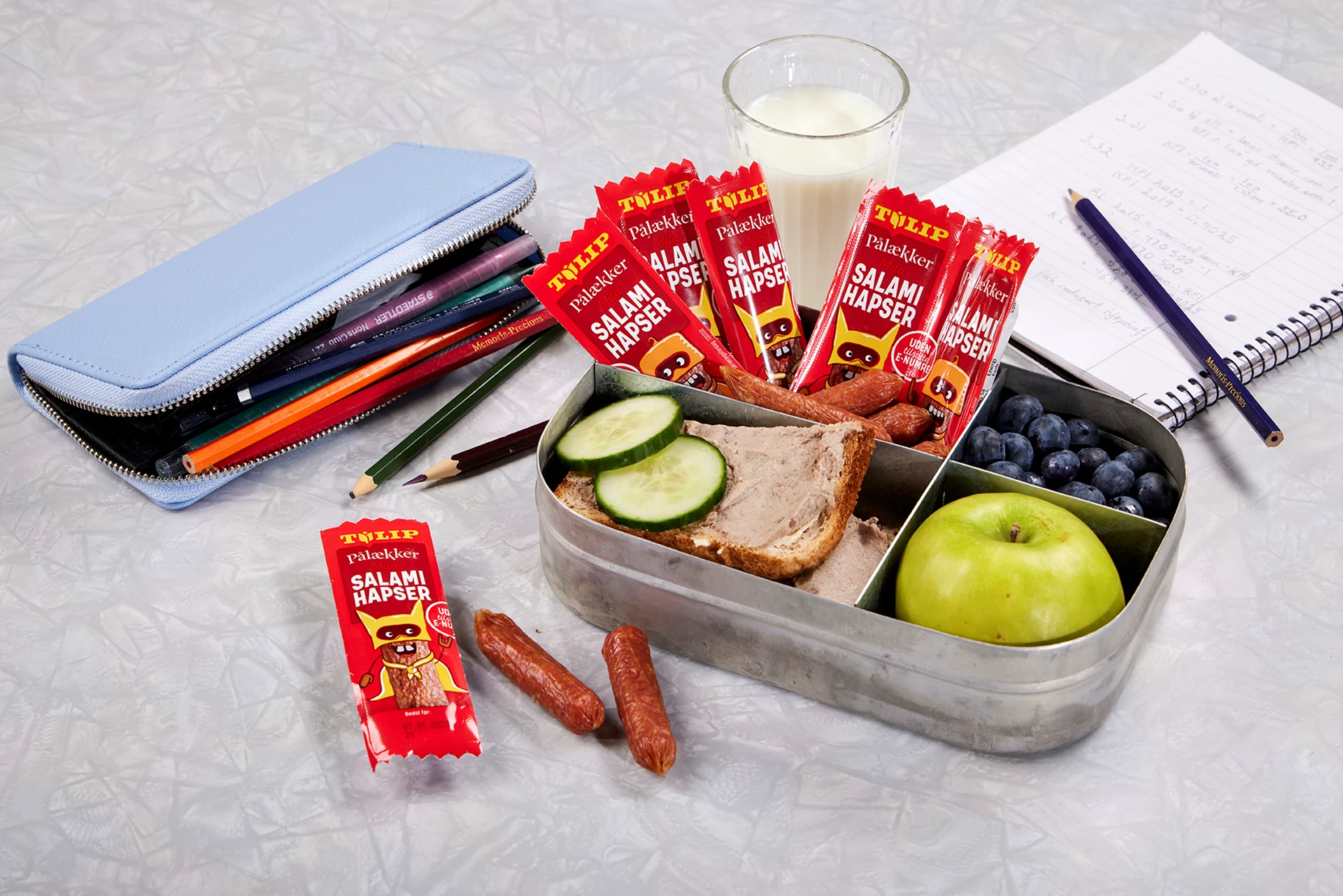 20 gMini Salami Mild Snacks er en liten, mild salami som passer perfekt i matboksen. Emballasjen har et morsomt og lekent design og smaken er mild og god. Laget uten tilsatte e-stoffer og nitritt.