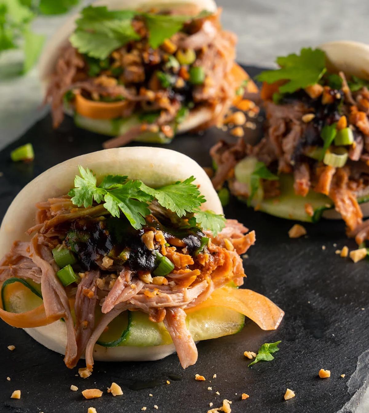 Bao buns även kallad asiatisk taco är otroligt enkelt och gott. Bröden köper du färdiga, och tillsammans med pulled pork är det enda du behöver göra är att värma köttet och skära grönsakerna. Precis som tacos sätter man ihop sina egna bao buns med tillbehören man önskar.