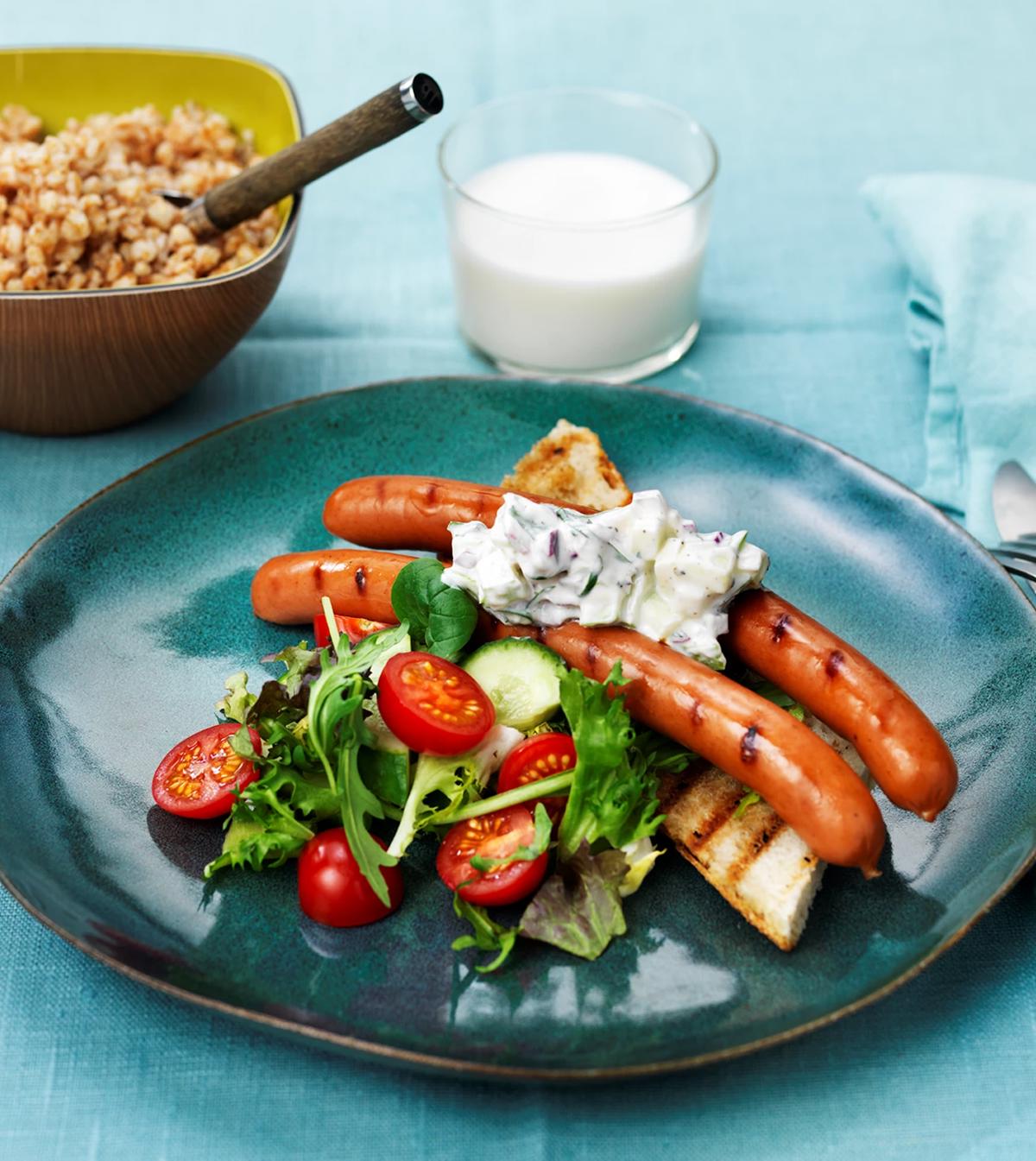 Bjud på en modern och smakrik twist på den klassiska grillkorven! Här kombineras saftig tjock grillkorv med karamelliserad lök, rostad paprika, senapscrème och krispigt bacon – allt serverat med fräsch sallad. En perfekt rätt till sommarens grillkvällar eller när du bara vill lyxa till det lite extra med enkla medel.