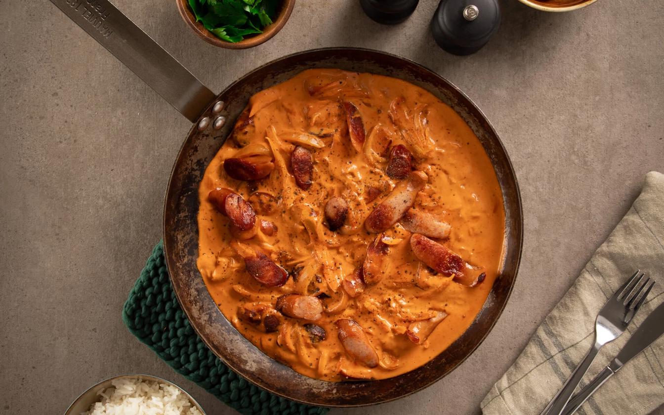 - Du kan även byta ut Wienerpölser mot Röda pölser. Pölse är den goda röda korven vi förknippar med Danmark. Pölsa är den gråa oinspirerande… här ska vi inte äta pölsa utan pölse.