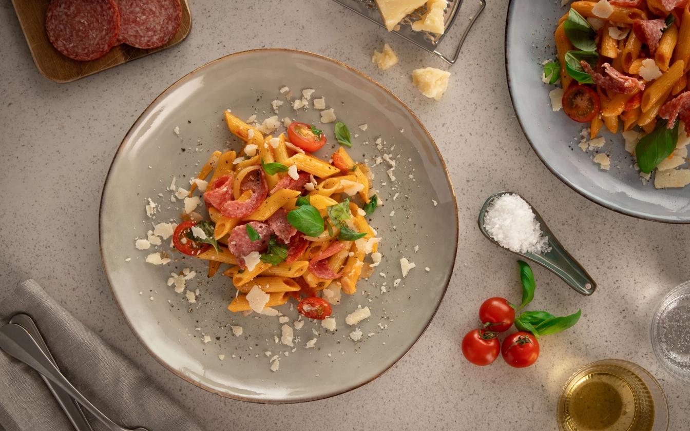 Kärt barn har många namn - Pasta à la Vodka , Penne vodka , Penne alla vodka och vodkapasta är några av dom, i och för sig typ samma namn. Men nu kanske fler hittar till detta underbara recept. I detta recept har vi tillsatt salami för extra smak! Ett gott och snabbt recept!