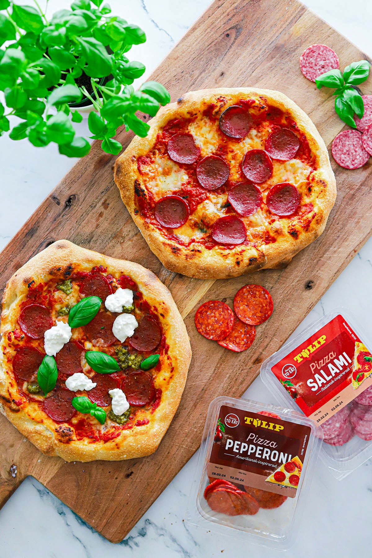 Variationer på pizza är oändliga - Prova vår variant med Italienskinspirerad salami, mozzarella, hemmagjord tomatsås, grillad zucchini och rostade pinjenötter. Lite lik den klassiska pepperoni pizzan men lite mer intressant i smakerna. Zucchinin och pinjenötterna lyfter pizzan till nya höjder, ett utmärkt sätt att tillfredsställa och samtidigt utmana smakerna hos barnen.