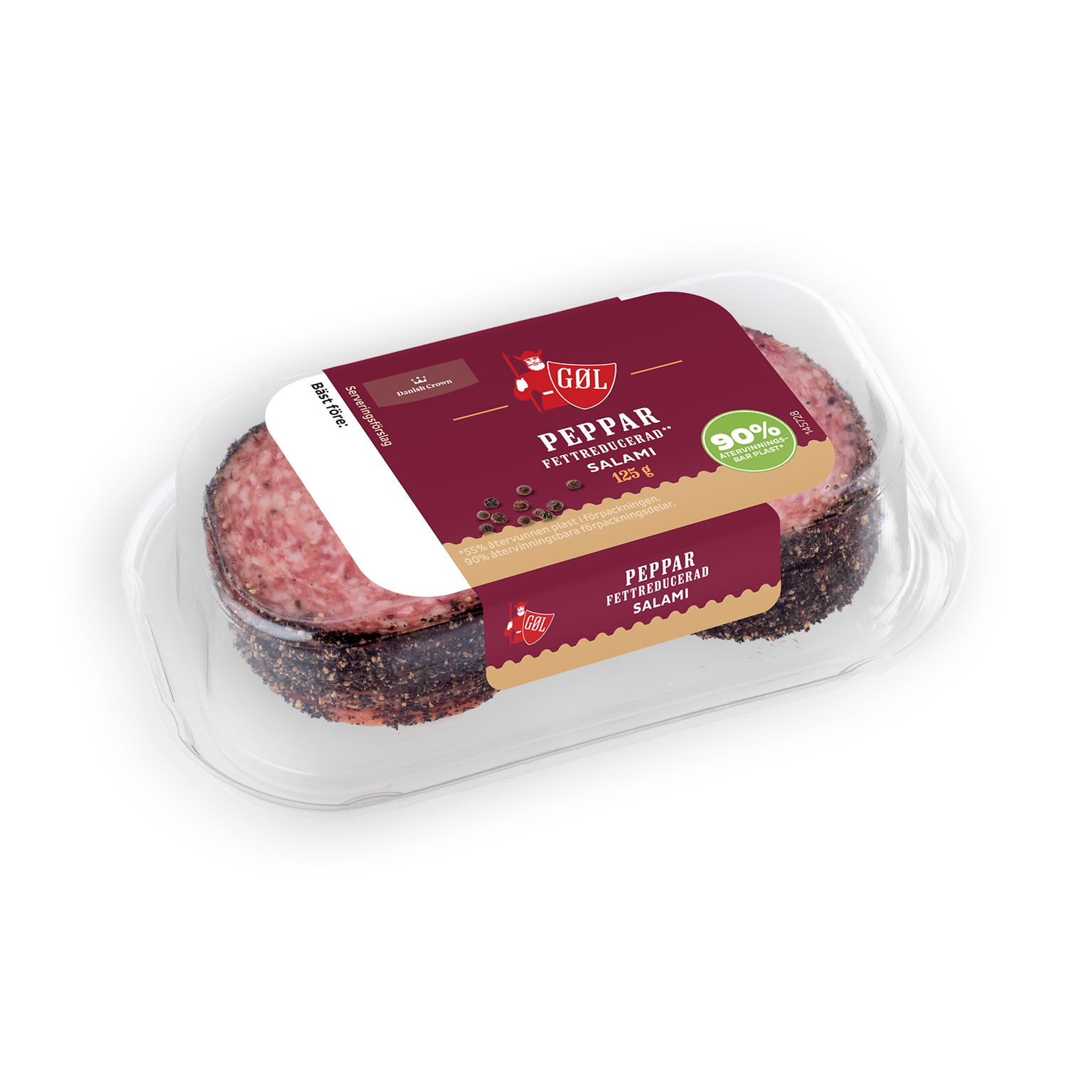 125 gGØL Pepparsalami är en av våra absoluta favoriter. Denna fettsnåla pepparsalami är en slankare variant av vår klassiska pepparsalami. Den är dessutom nyckelhålsmärkt, med samma höga kvalitet och goda smak.