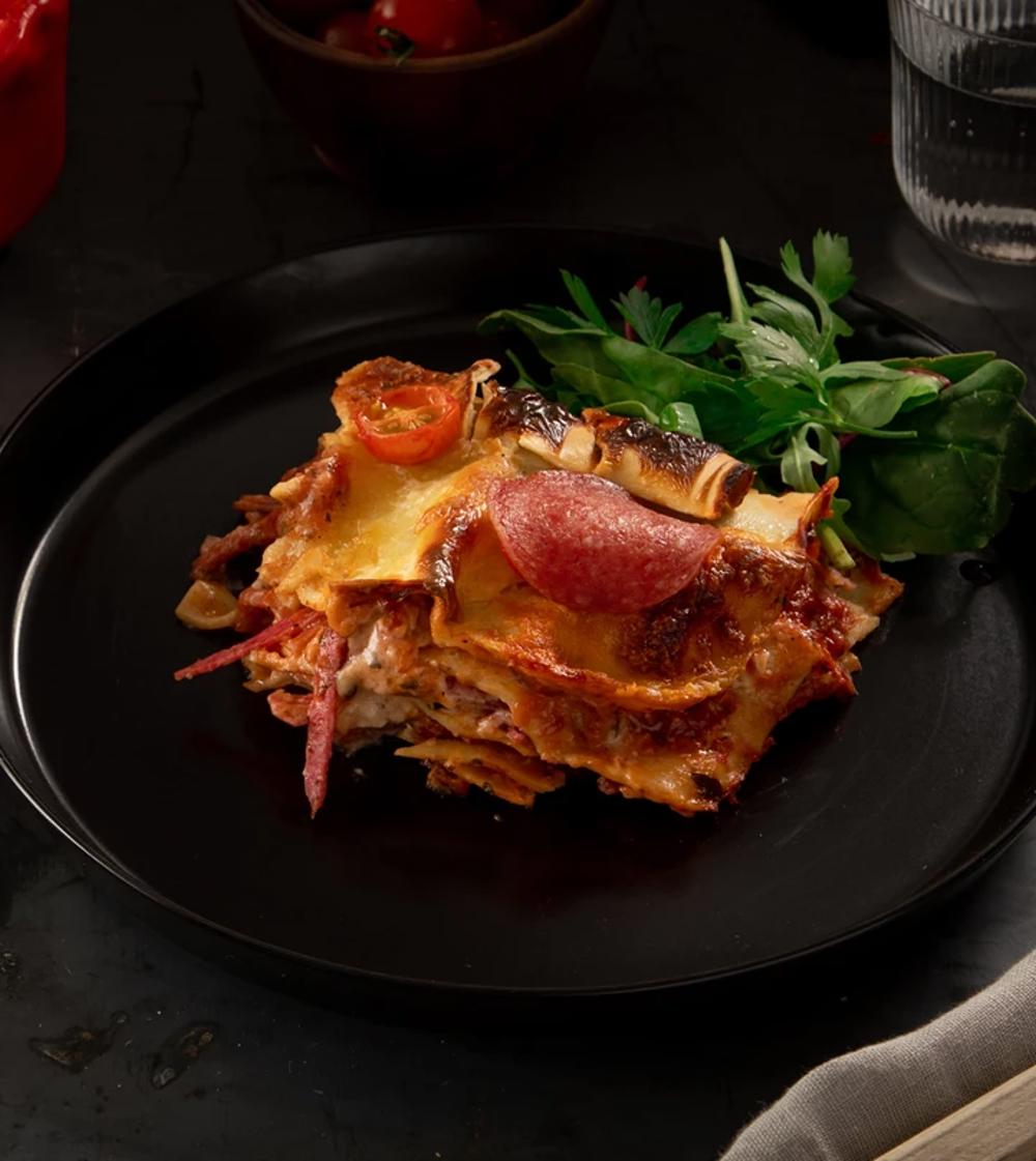 Fylld kycklinglårfile med skivad salami och cheddarost