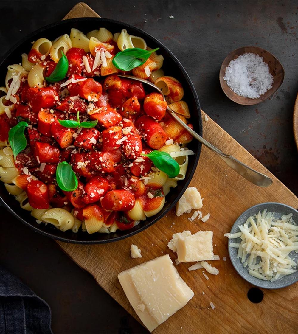 Detta recept på en krämig pastarätt bjuder på en härlig blandning av saftiga svampar, knaperstekt bacon och frankfurterkorvar i en smakrik gräddsås. Pastarätten är enkel och kan tillagas på bara 30 minuter. Den är därför perfekt för de dagar då du vill skämma bort dig själv och dina nära med något extra gott utan att spendera lång tid i köket.