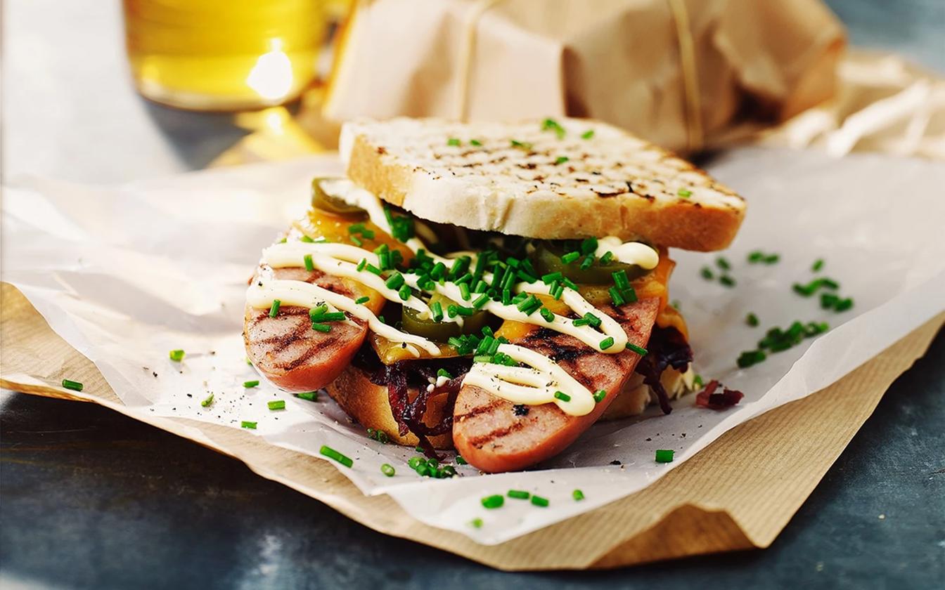 När du gör en smörgås är det bara fantasin som sätter gränserna för innehåll och smak. I detta sandwich recept grillar vi brödet och toppar med vår Cheddar Chili-Korv, karamelliserad rödlök, mayo och inte minst cheddarost. Grillad toast har väl aldrig slagit fel?