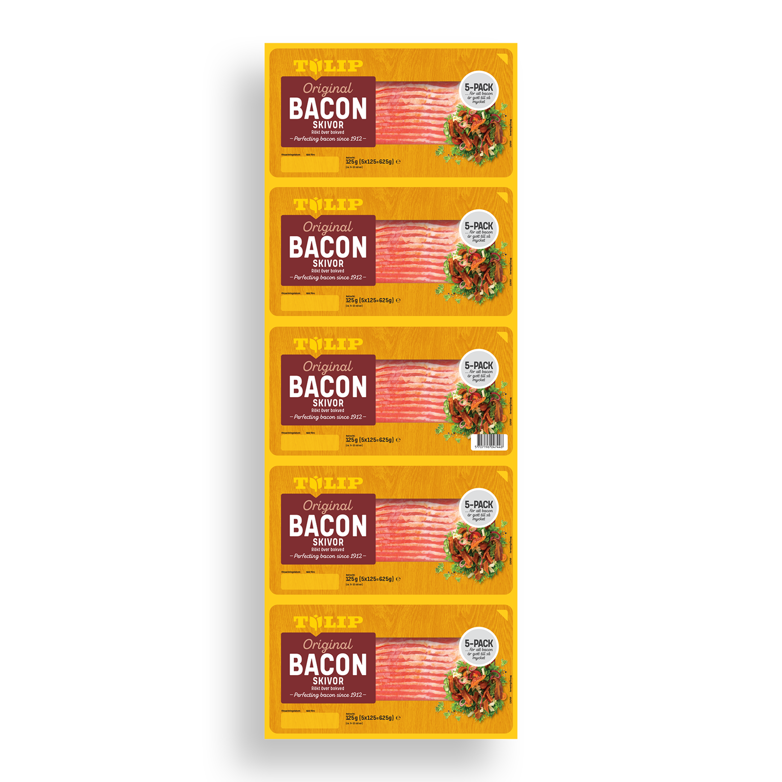 200 gTulip 5-pack innehåller precis samma fina baconskivor som våra singelpack, med intensiv, god och rökig smak.