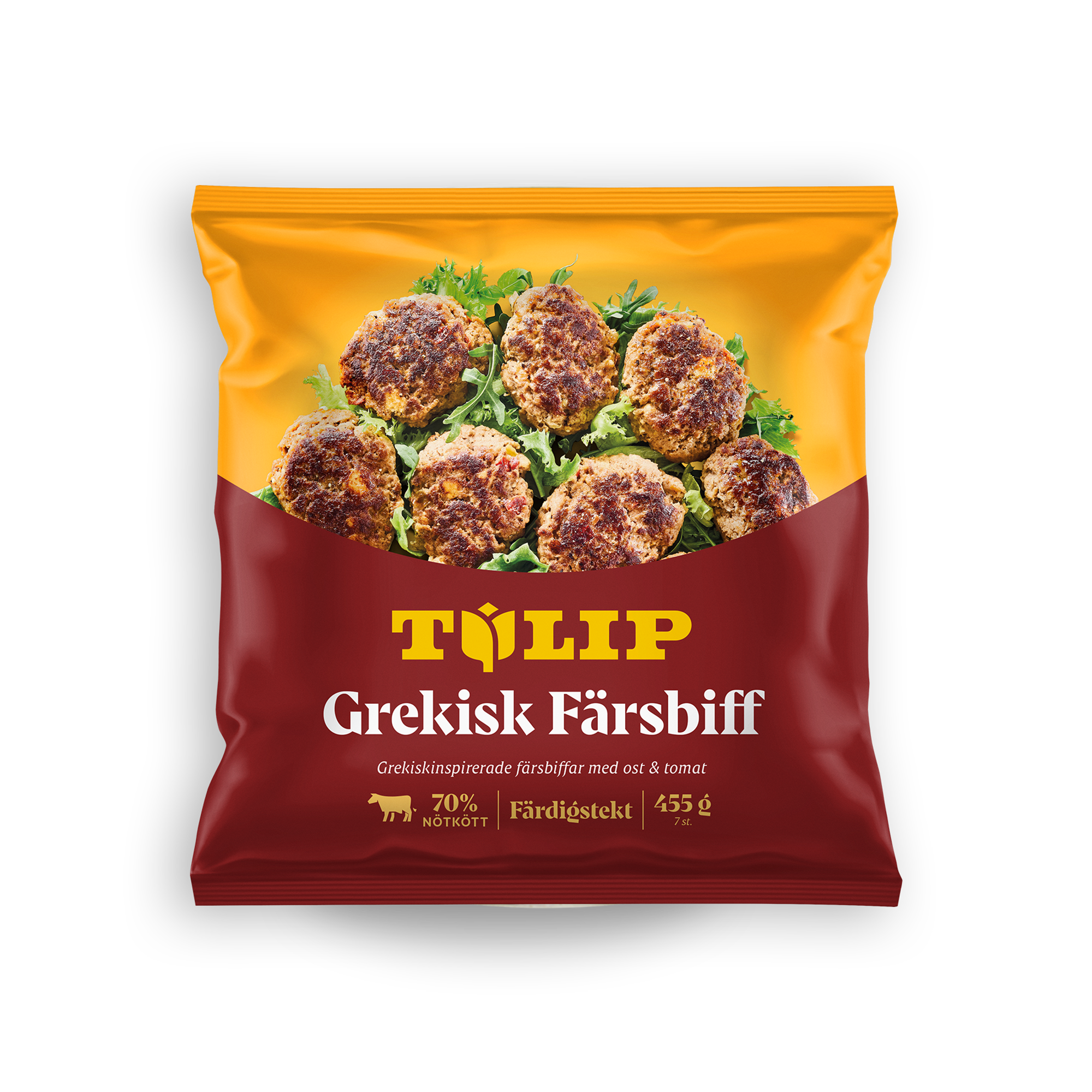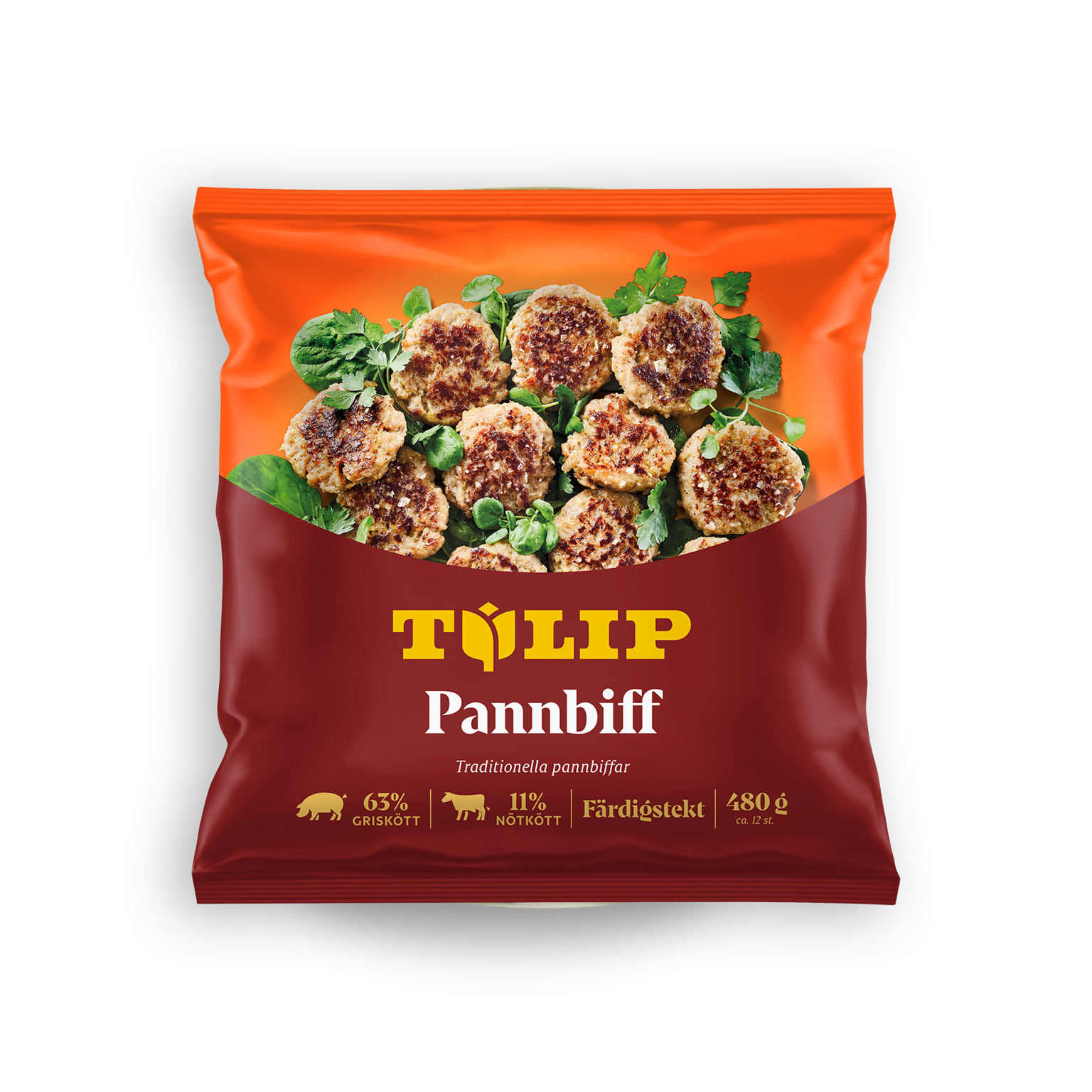 480 gTulip färdigstekta pannbiffar tillagade enligt klassiskt recept. Saftiga och goda pannbiffar av nötkött i praktisk storlek, som passar både barn och vuxna. Bara att värma och servera på traditionellt vis, eller servera kall på smörgås.