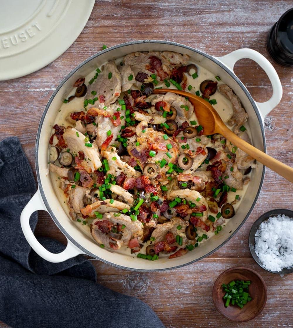 Baconlindad kycklingfile med mozarella och sötpotatis