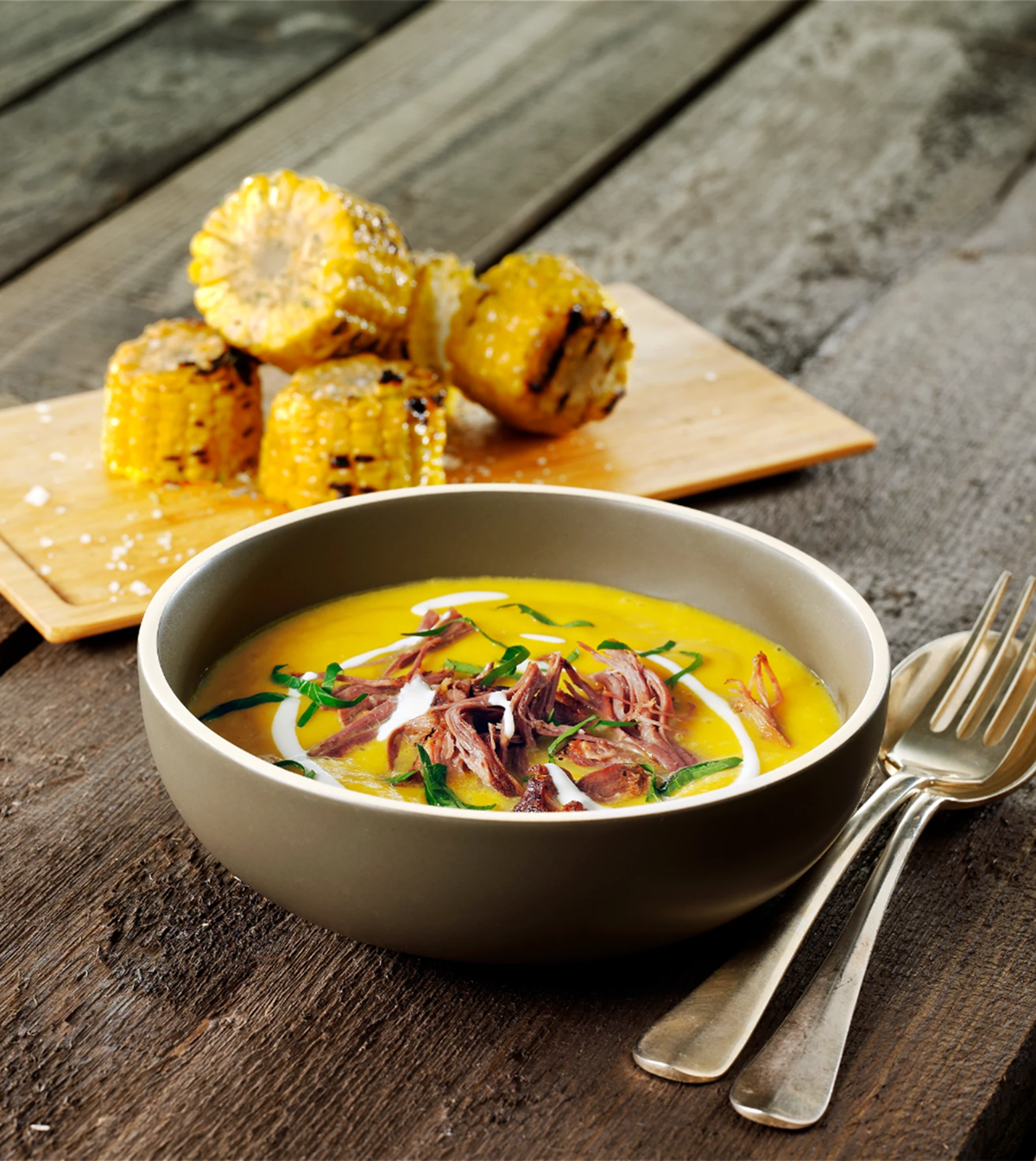När hösten kommer finns det inget bättre än en varm och kryddig soppa. Denna butternutsoppa med Tulip Pulled Pork kombinerar sötman från pumpa och morötter med hetta från chili och krämig kokosmjölk. Toppa med krispiga solrosfrön, mjuk fetaost och saftig pulled pork – en mättande och smakrik rätt som både värmer och tillfredsställer.