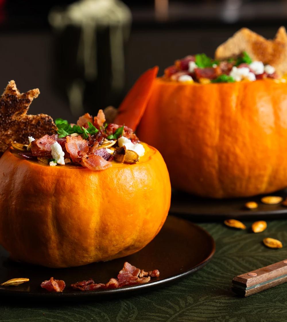 Halloweenpizza med bacon och skinka